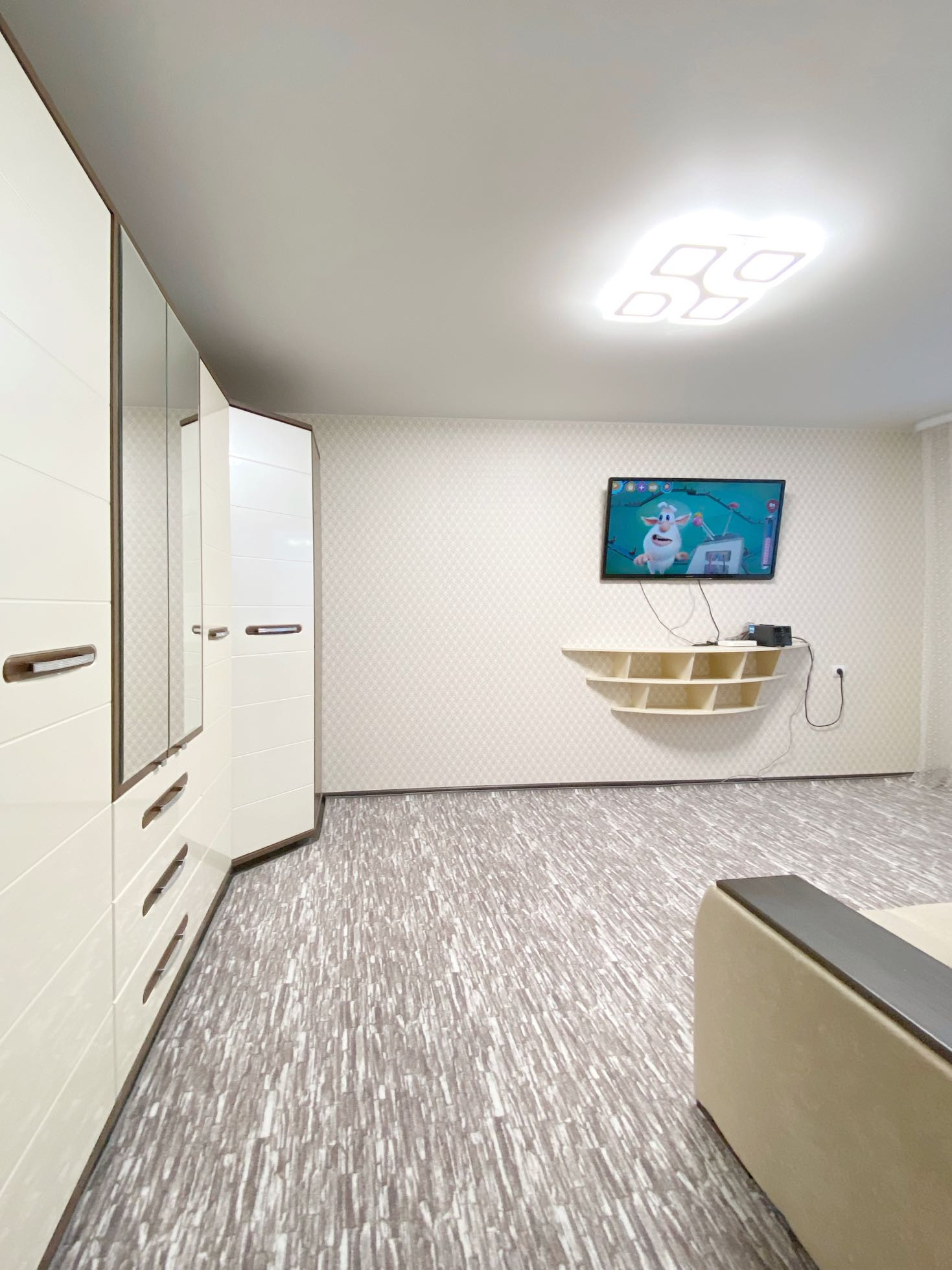 В детской яркие фотообои хорошего качества. В санузле водонагреватель на 80л и тропический душ.