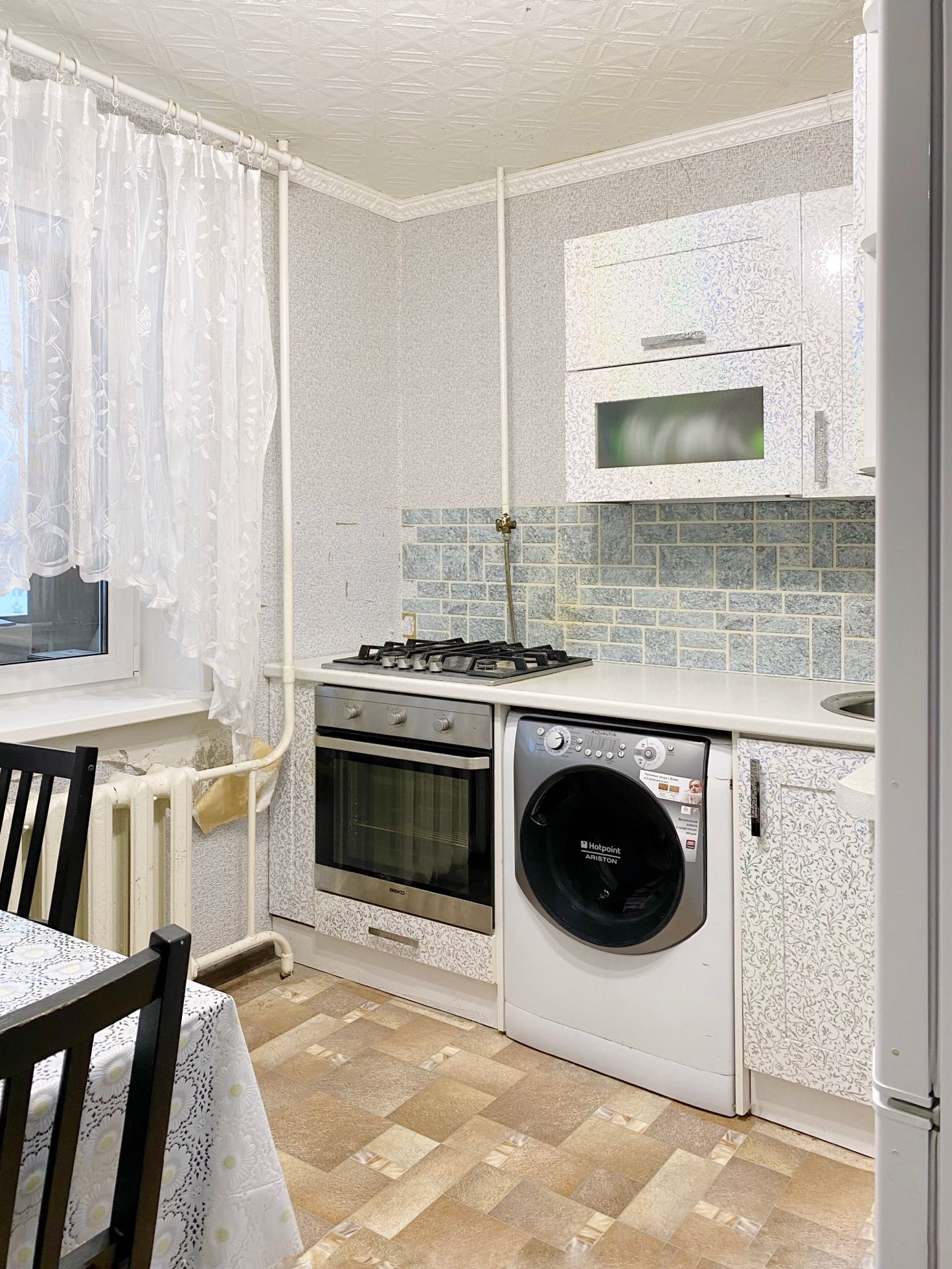 Ремонт всей квартиры до дверей кухни только-только сделан, на кухне не успели.