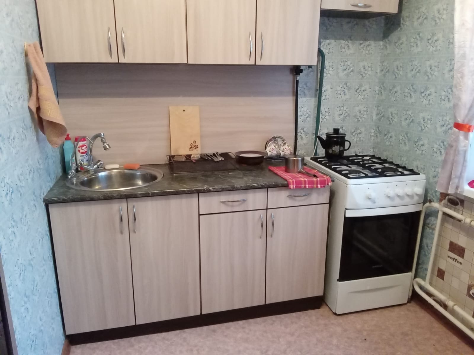 душевая кабина, кухонный гарнитур, диван, шкаф, стол компьютерный