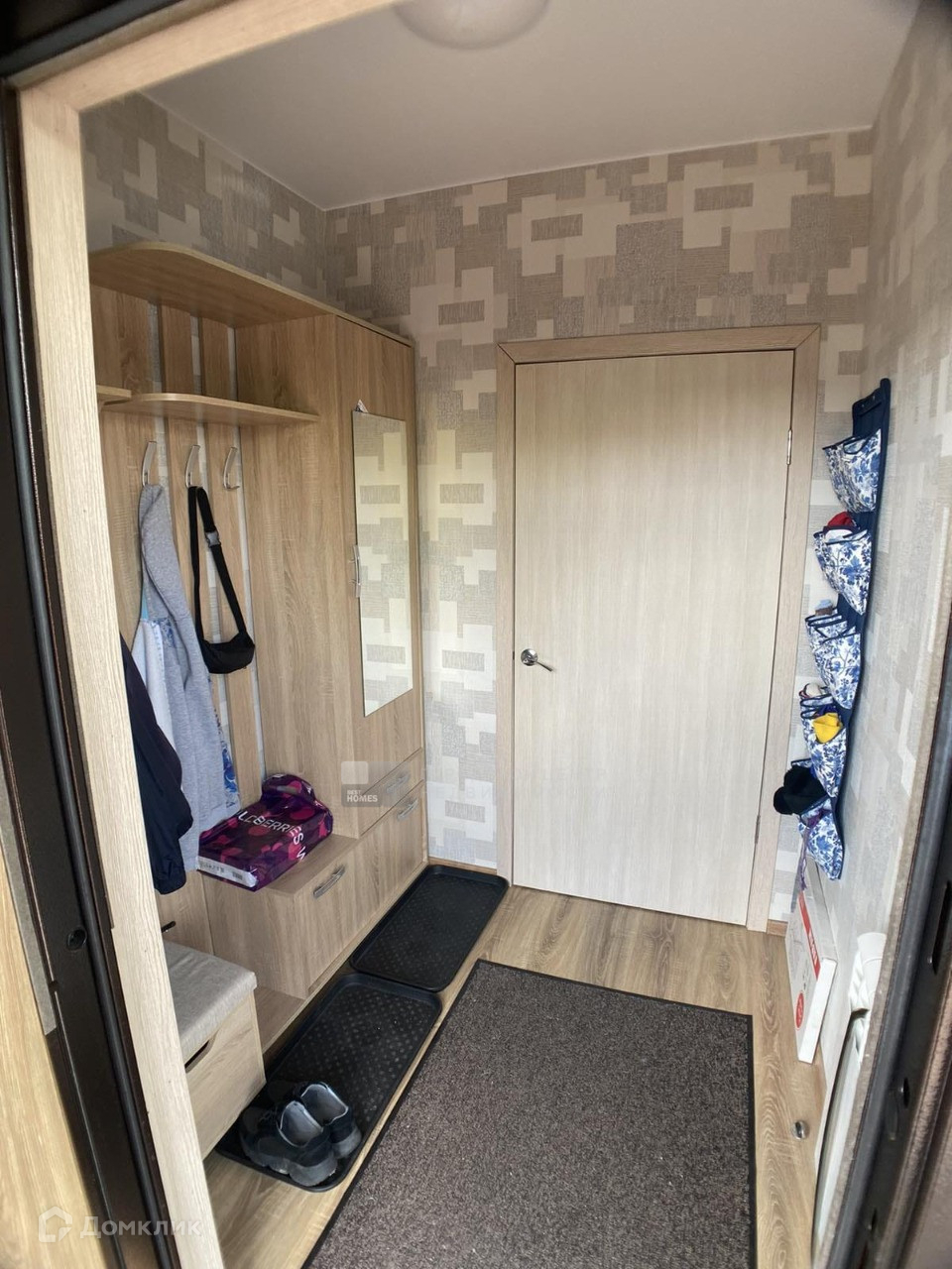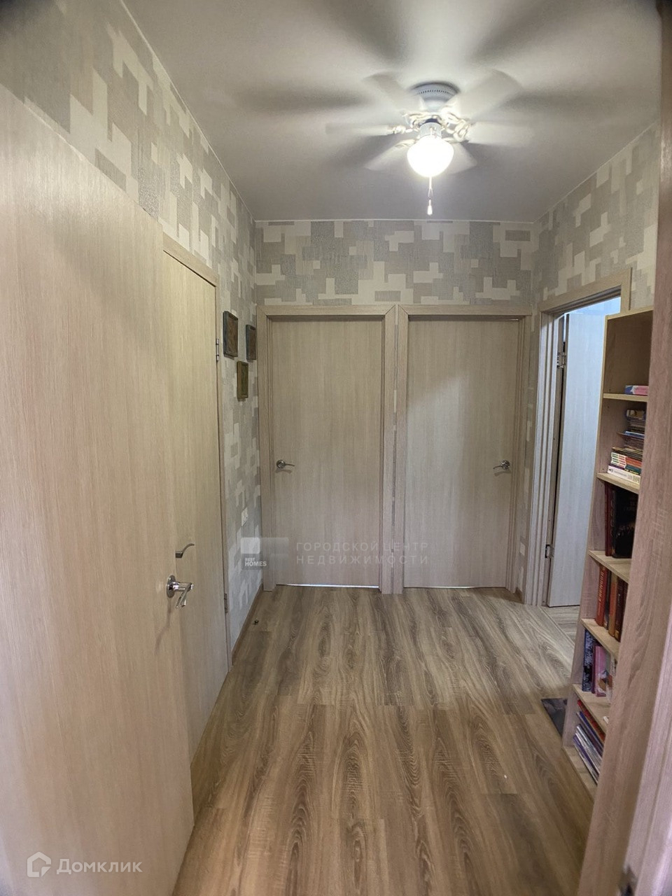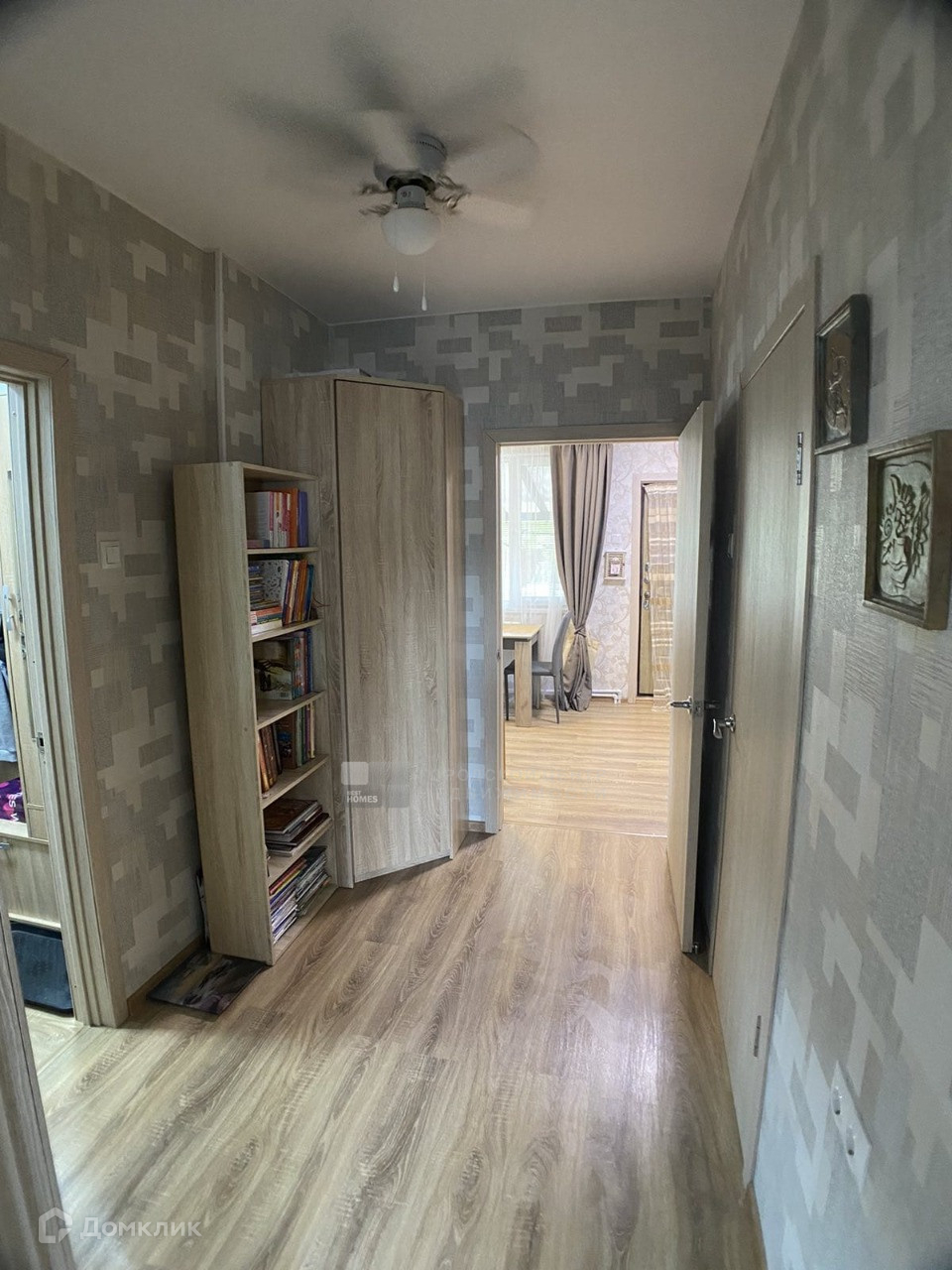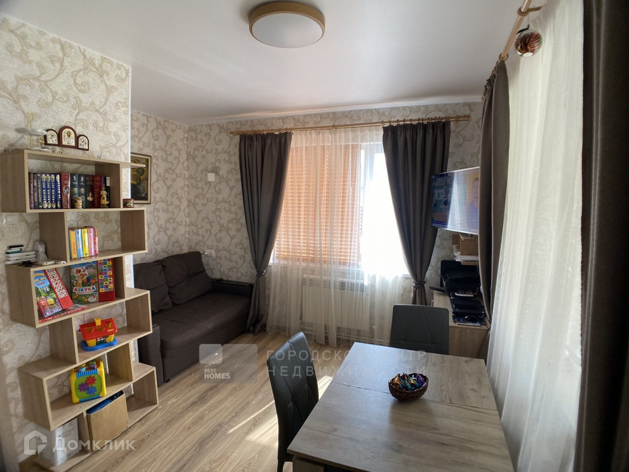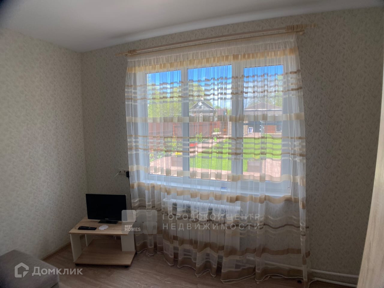 Внутри утеплен, обшит гипсокартоном, красивые современные обои.