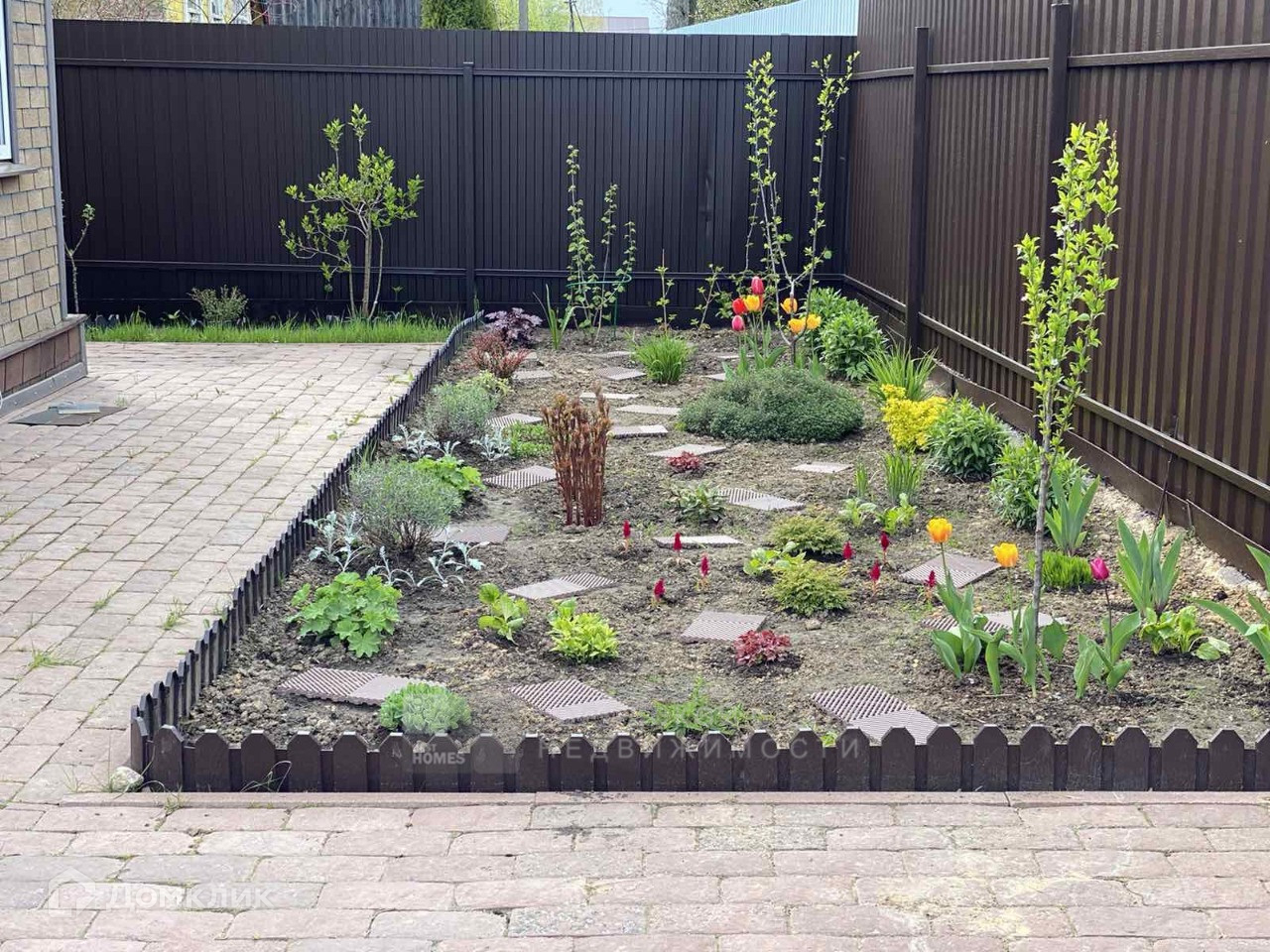Все дорожки на участке аккуратно выложены плиткой.