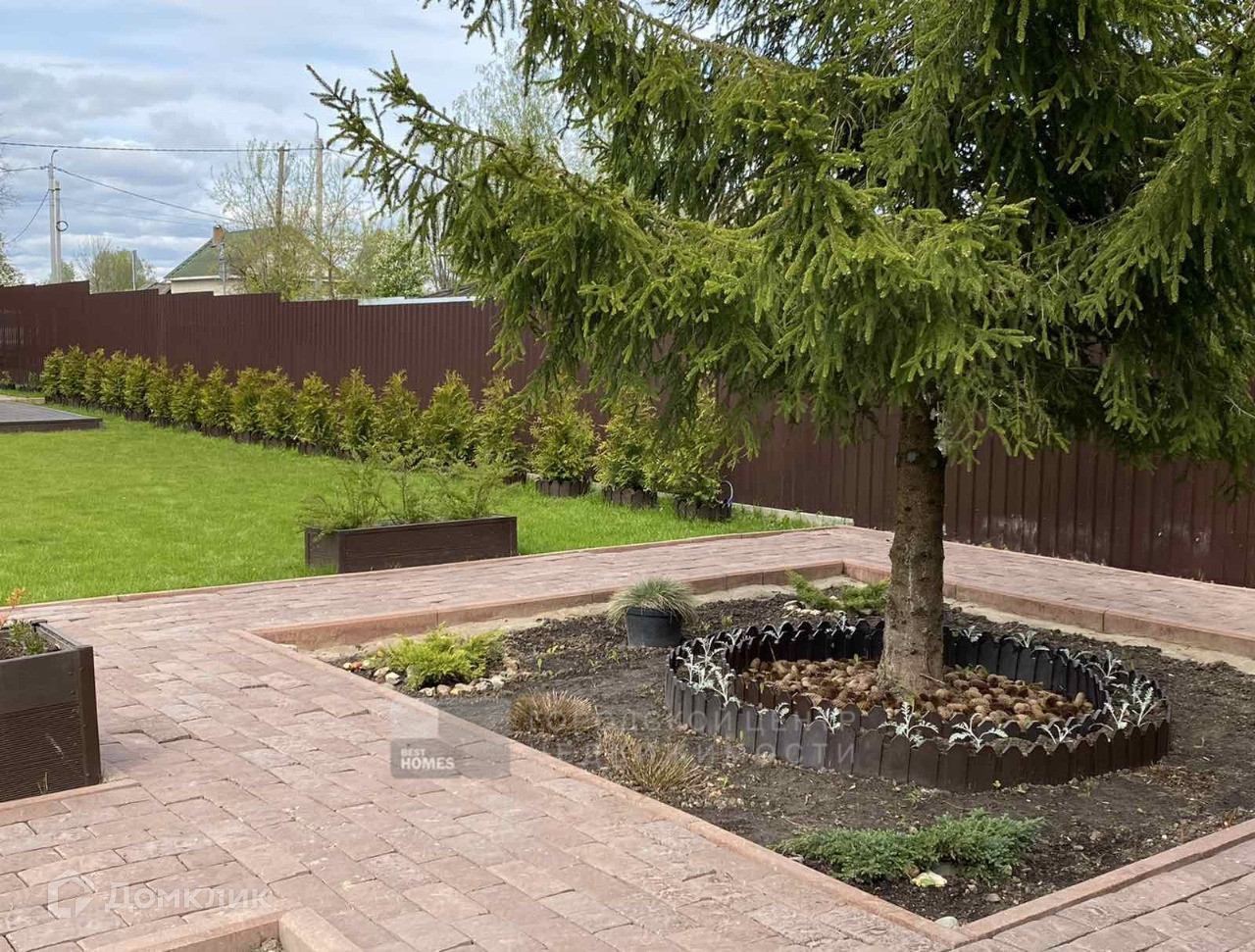 Высажена живая изгородь из туй.