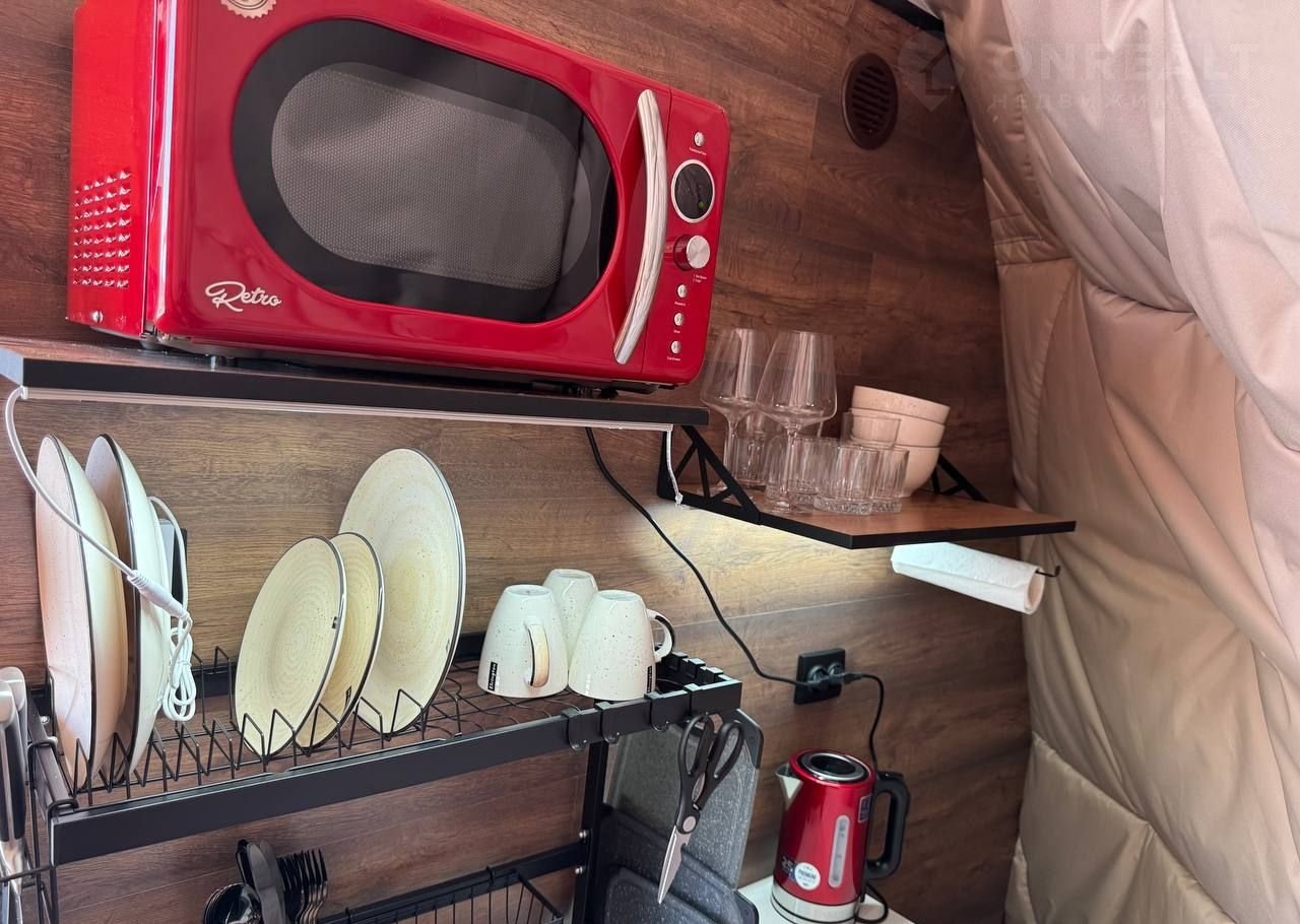 оКухня с микроволновой печью и холодильником-баром
