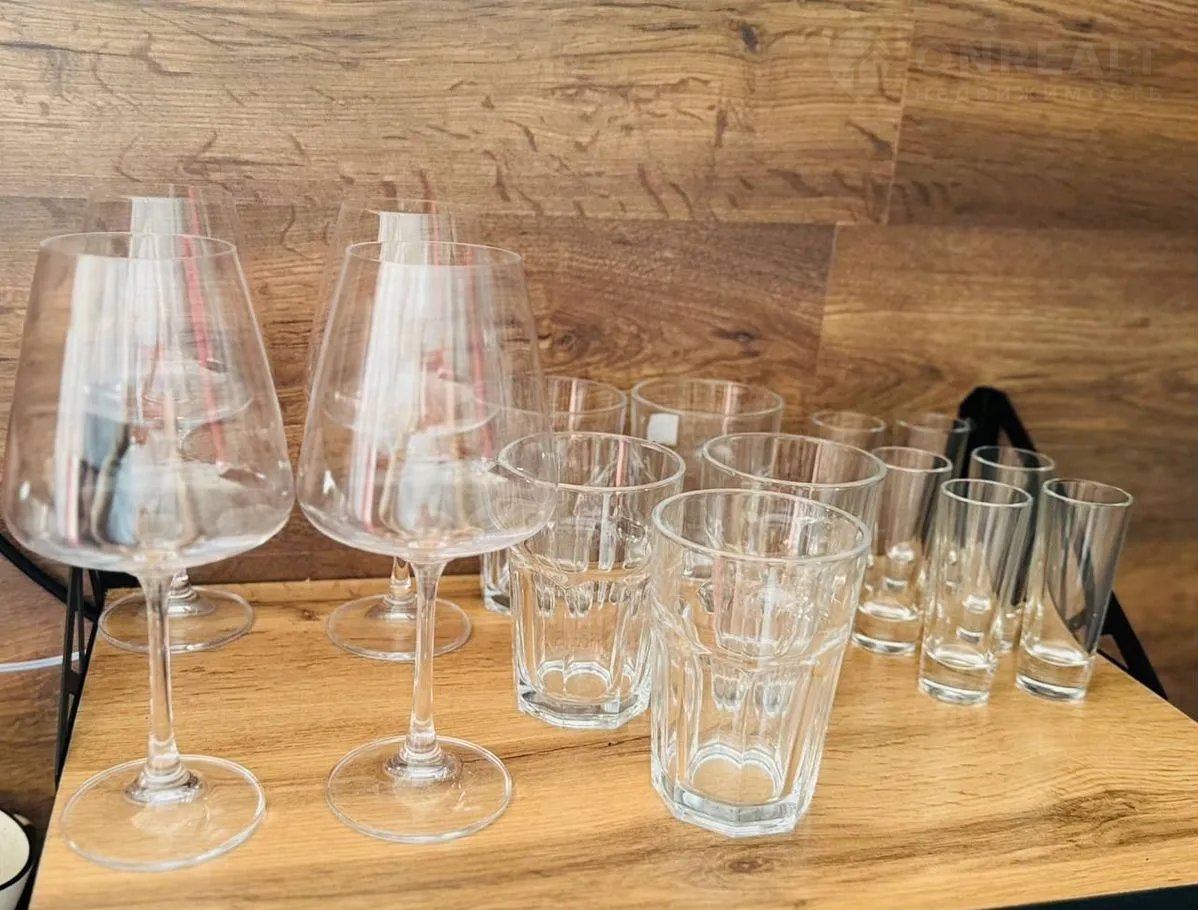 Вся необходимая посуда имеется в кухне домика.