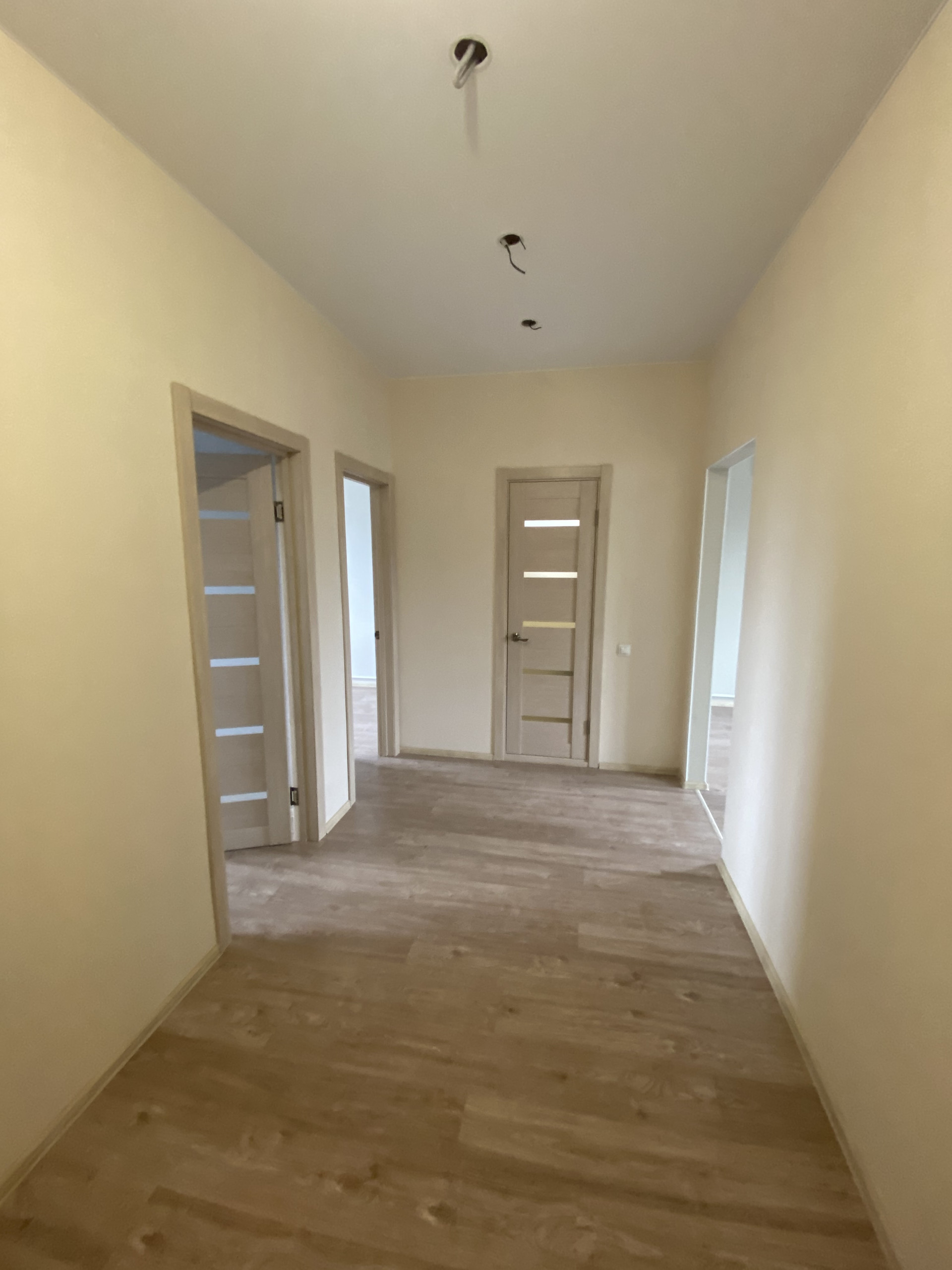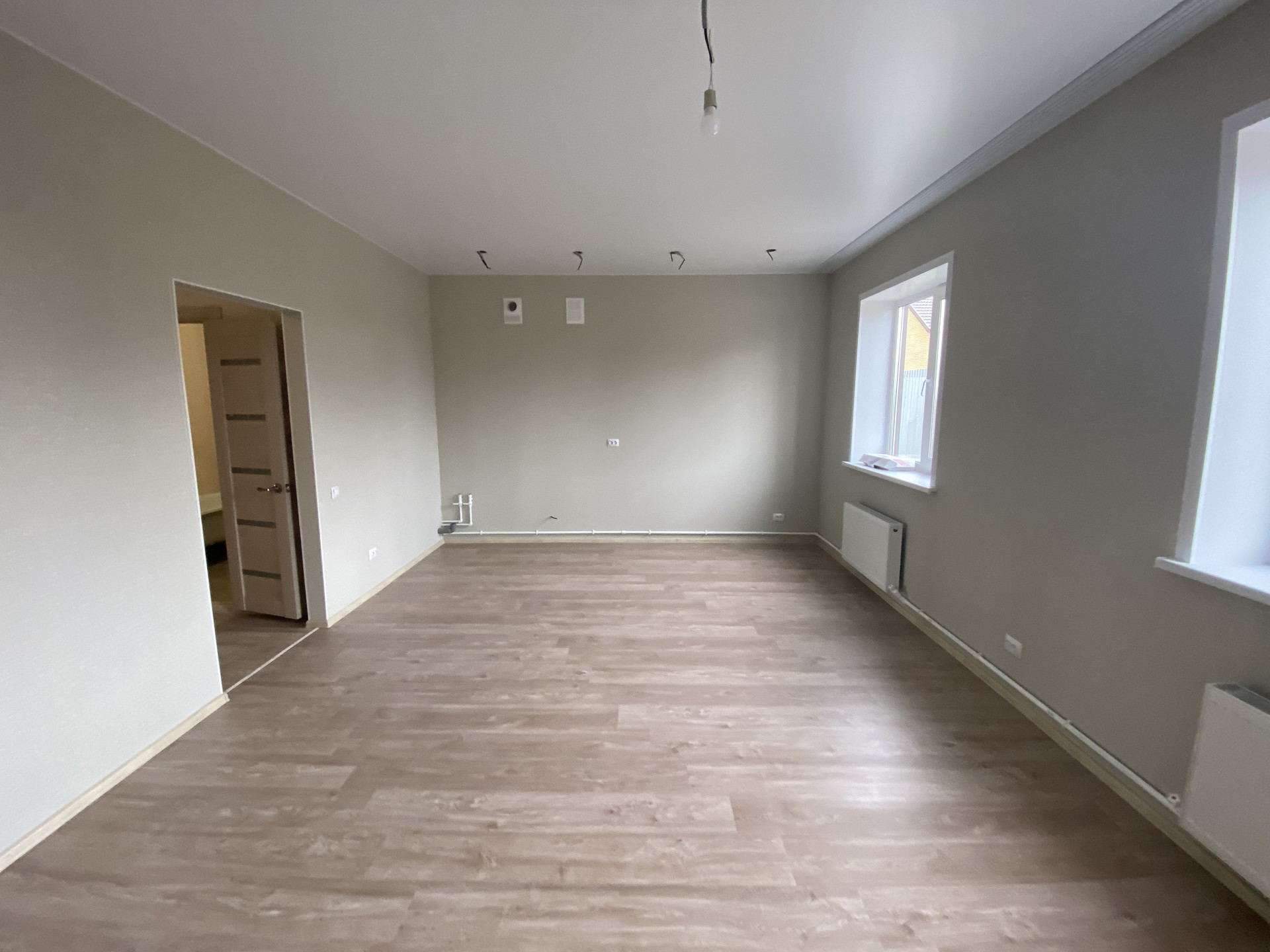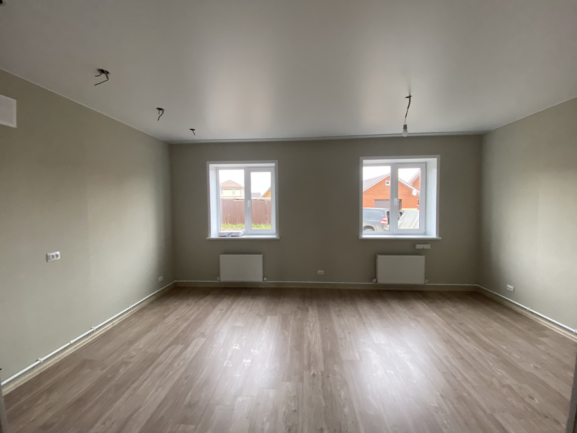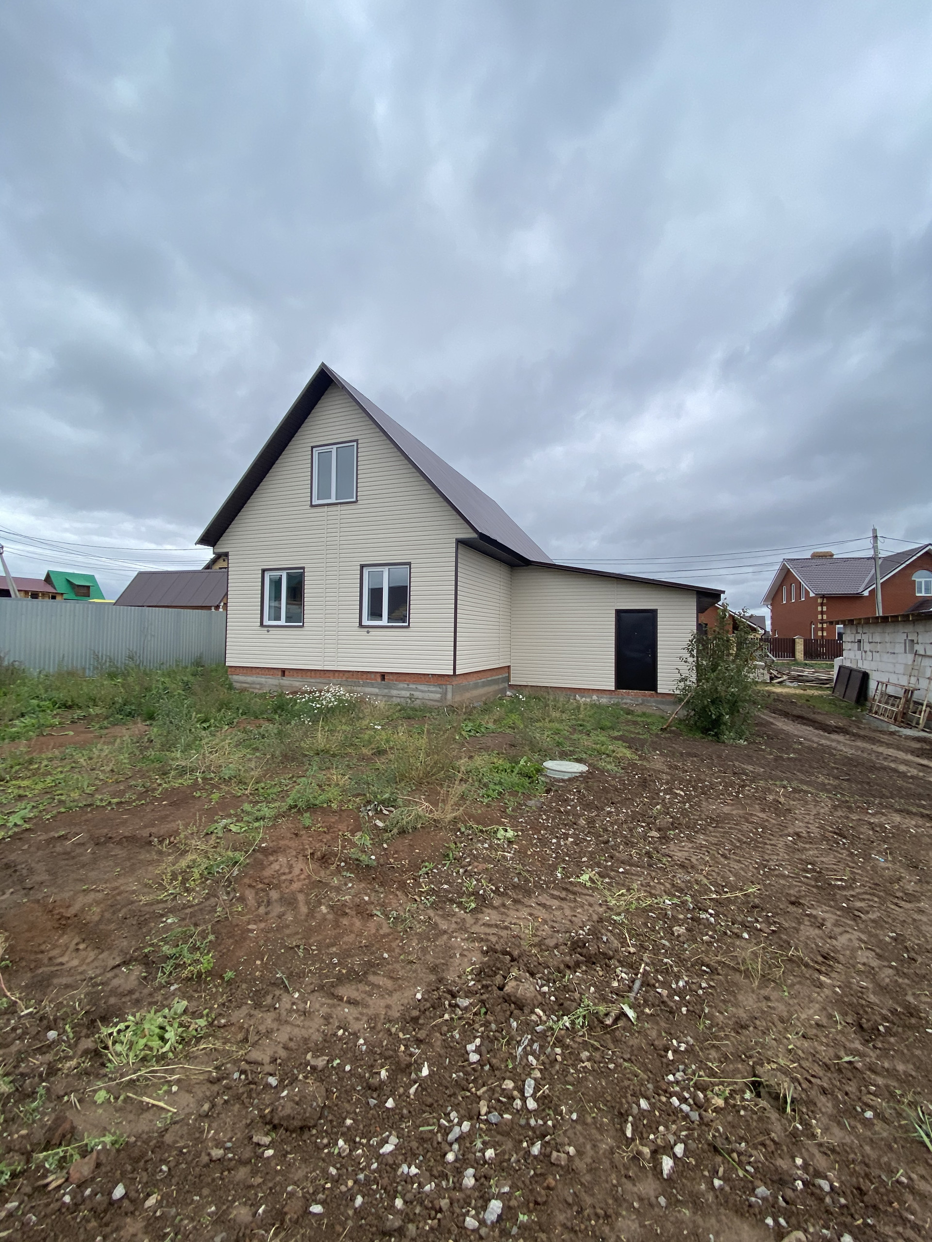 Дом полностью готов, первый этаж под ключ. Обои ламинат сантехника двери натяжные потолки 60 кв, вторй этаж на перспективу 55кв электричества окна отопление, плюс гараж 35кв