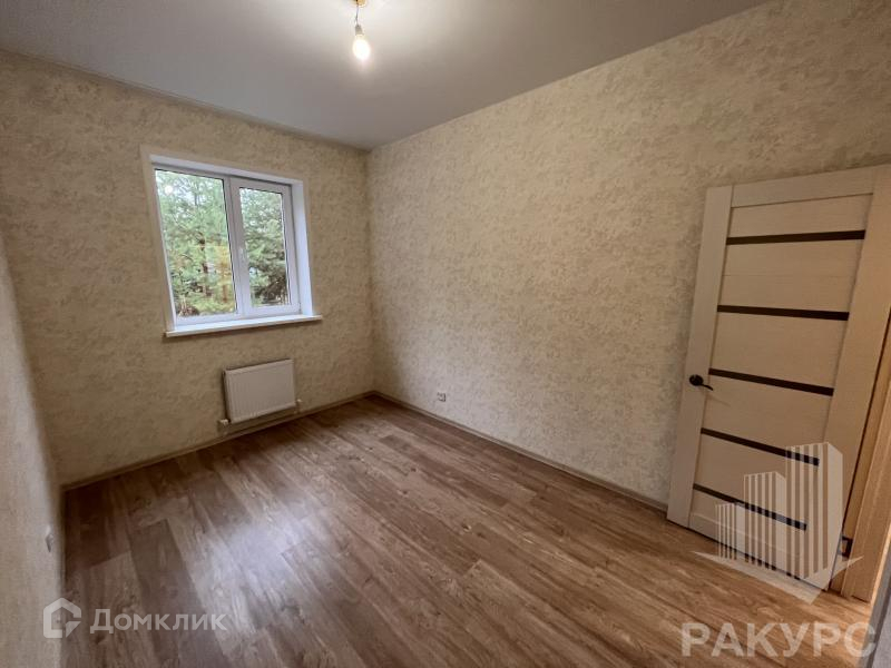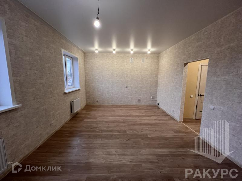 Первый этаж состоит из просторной кухни-гостиной 24 кв.м. и двух изолированных комнат около 12 кв.м. каждая. Второй этаж на перспективу: установлены окна, под натяжным потолком оставлен лаз для лесенки.