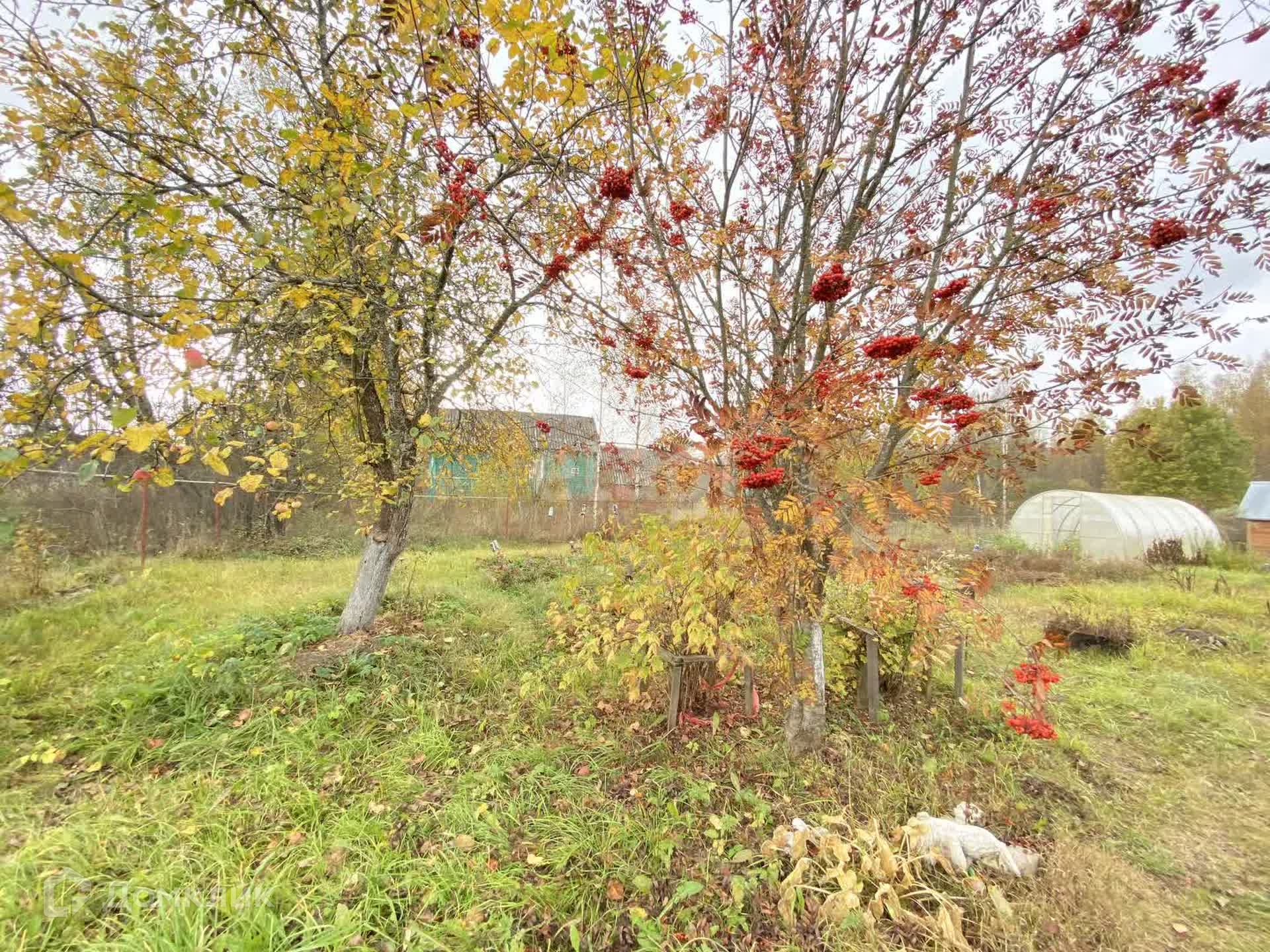 Земельный участок уже разработан и радует глаз плодово-ягодными растениями, а теплица из поликарбоната позволит вам вырастить собственные овощи и зелень.