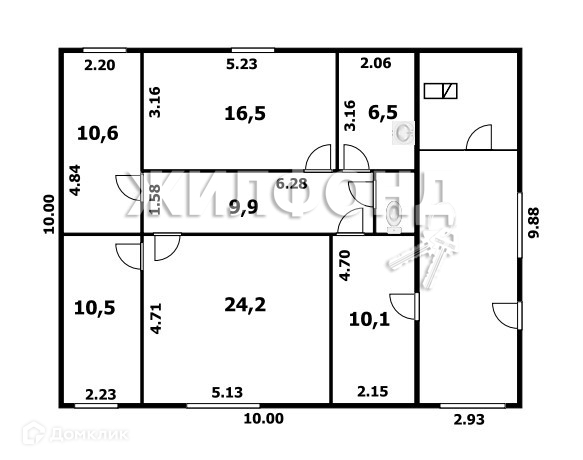 Жилая площадь 45.3 м2