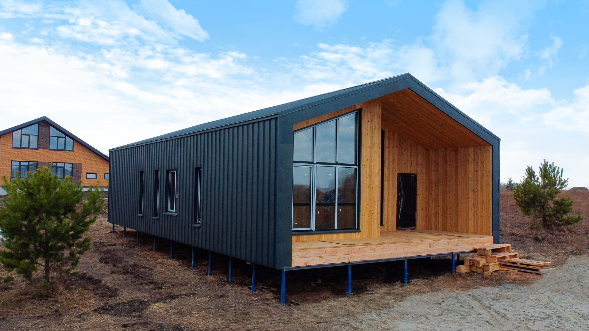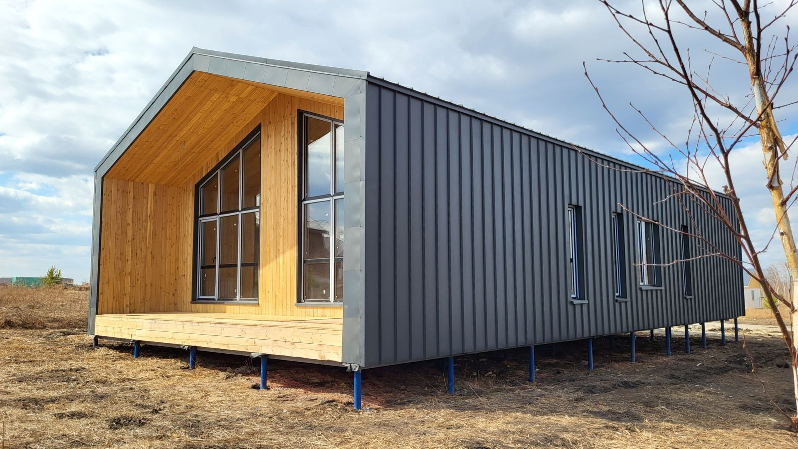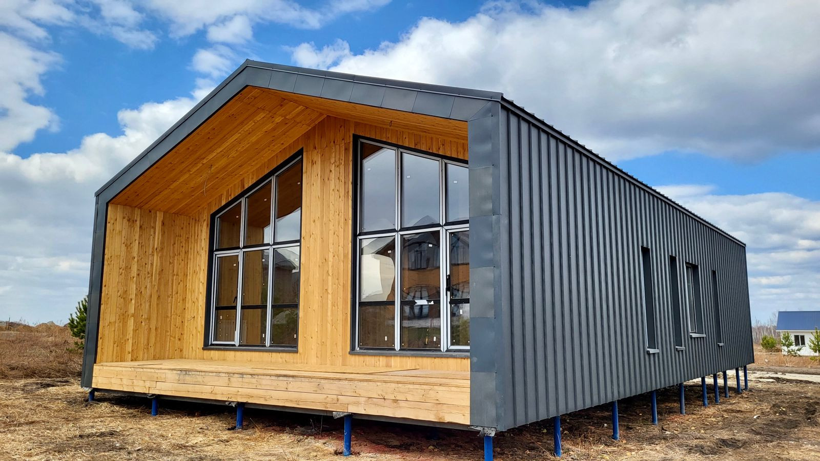 - Терраса: в контуре дома под единой кровлей, обшитое деревом, обработанными антикоррозийной пропиткой.