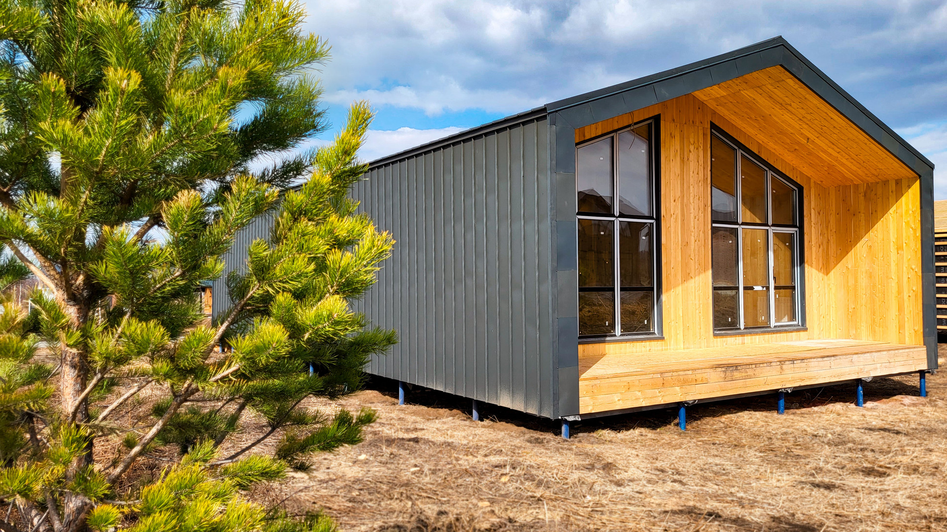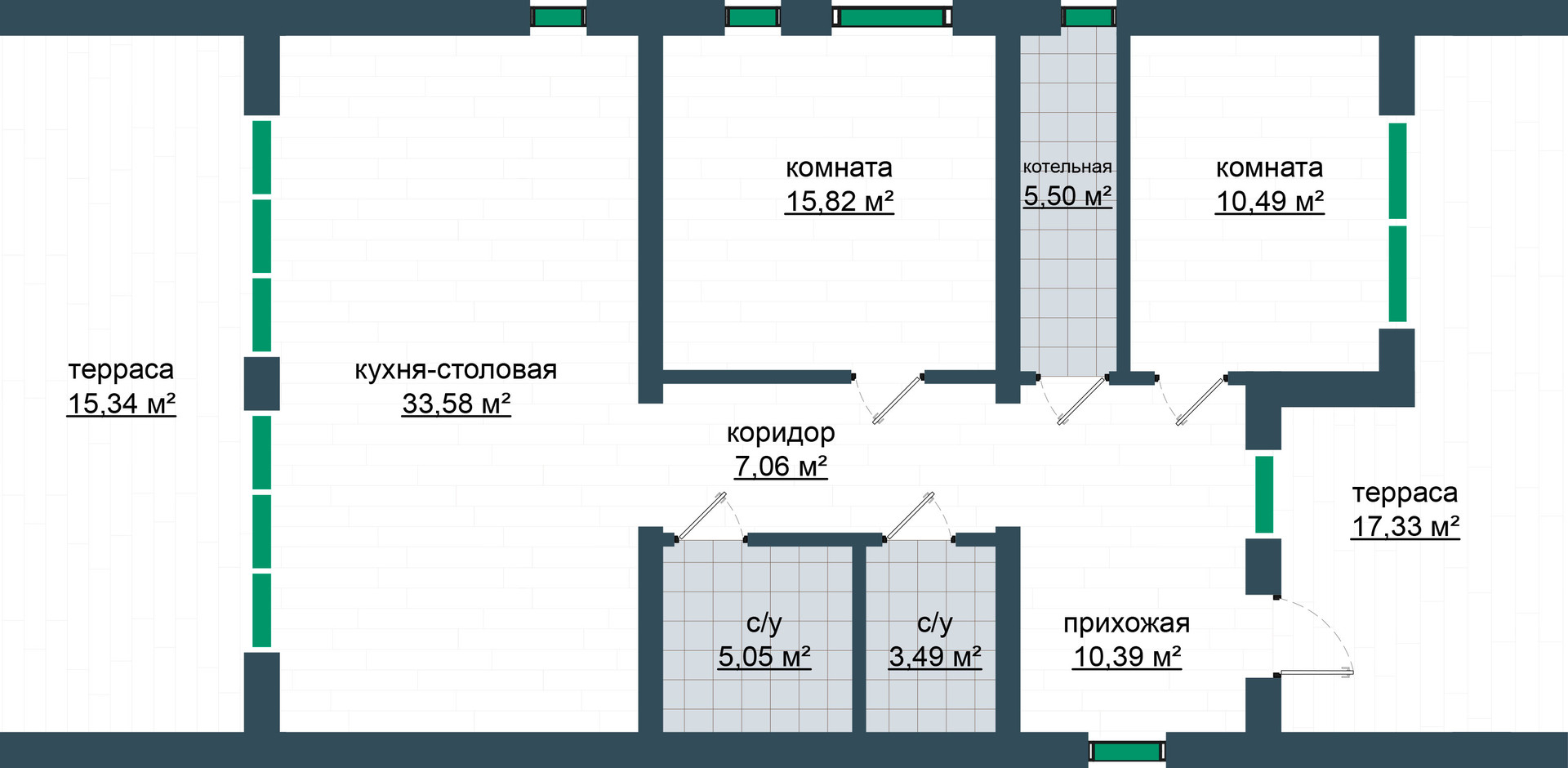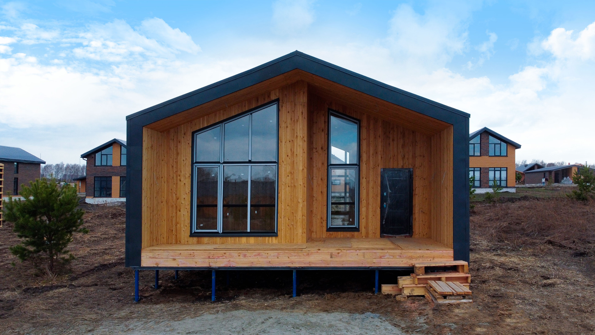 - Терраса: в контуре дома под единой кровлей, обшитое деревом, обработанными антикоррозийной пропиткой.