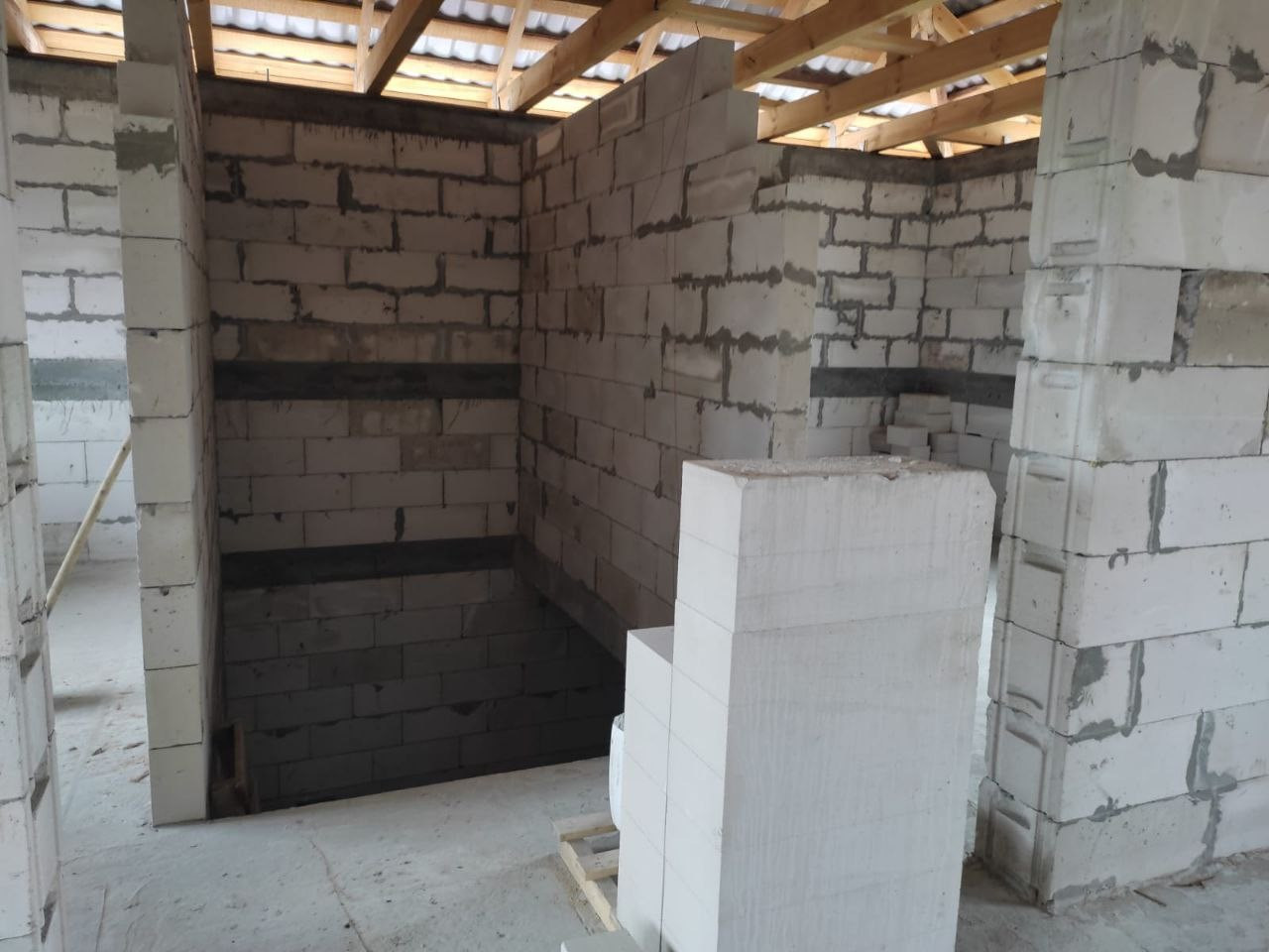 Надежный свайно-ростверковый фундамент, заглублен в грунт ниже отметки промерзания почвы, связан железобетонной монолитной плитой. Крепкие стены из сибита 300 мм с армированной кладкой и монолитными поясами. Перекрытие  монолитная железобетонная плита. Кровля металлочерепица 0,55 мм