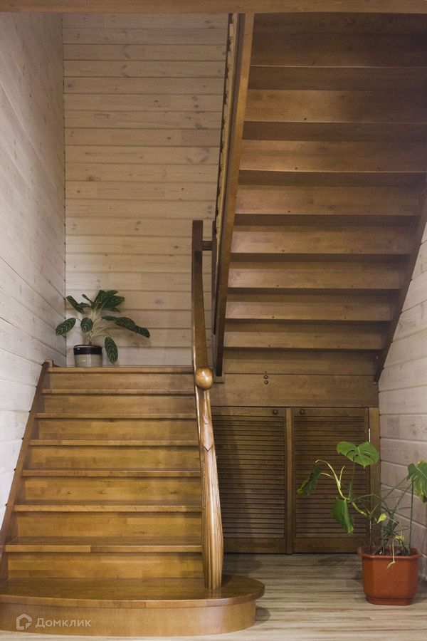 Этажи соединяет двух маршевая лестница из массива дерева. Высота потолков 3м.