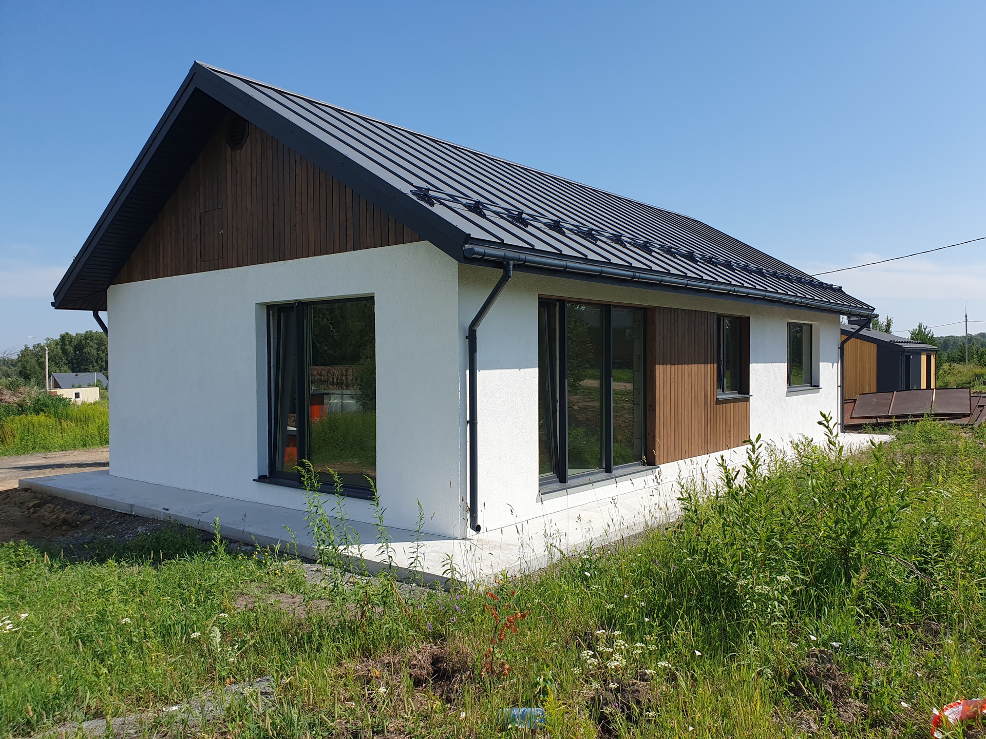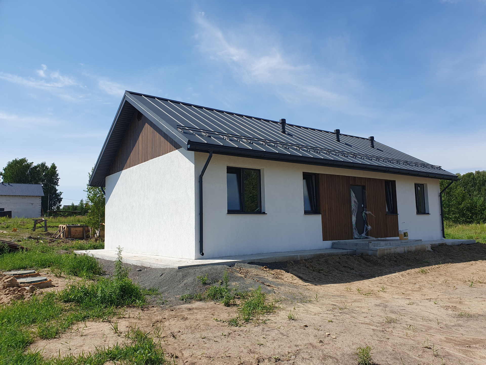 Сам дом выполнен из сибита 300, утеплен каменной ватой 100мм, фундамент УШП( утепленная шведская плита) Утепленная кровля покрыта металлочерепицей, отливы, снегозадержатели, все коммуникации в доме и разведены по мокрым точкам и комнатам, электро котел, водонагреватель на 100л., полусухая стяжка пола, ровные ошпаклеваные цены, стеклопакеты VEKA, септик с переливом. Словом дом полностью готов под чистовой ремонт!