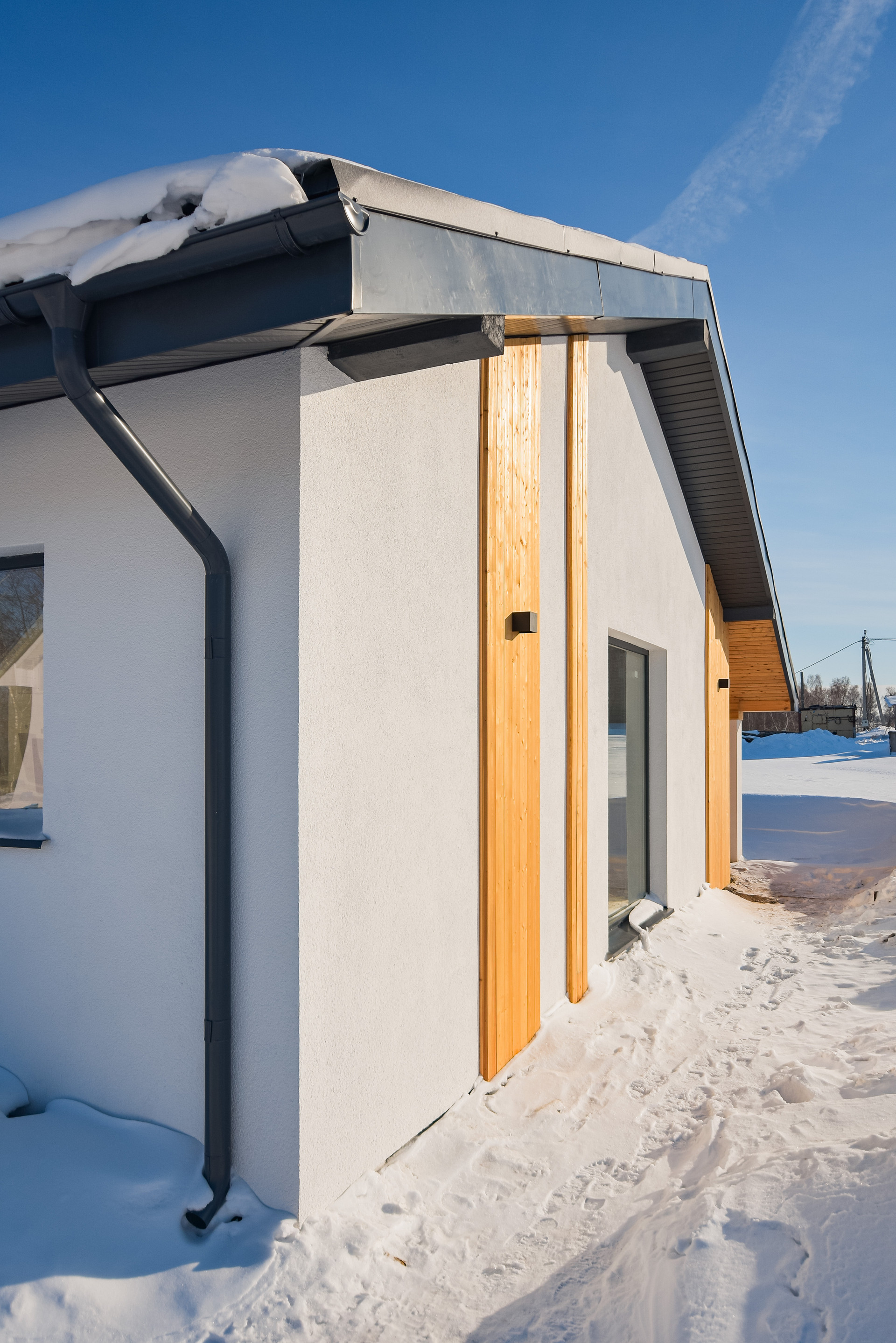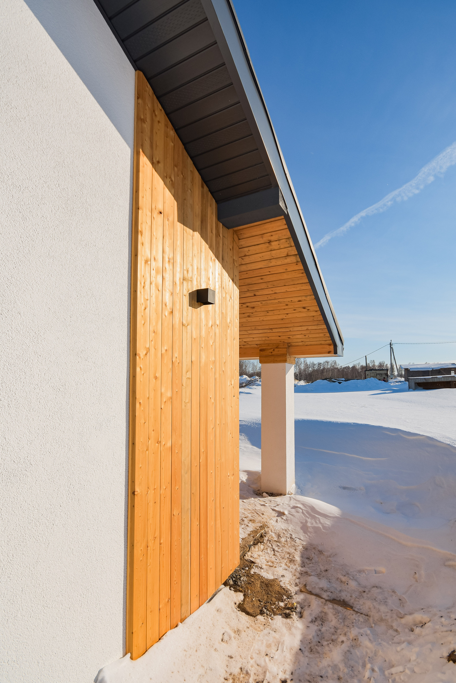 Внешняя отделка:декоративная штукатурка, покраска Cerezit, планкен лиственница.