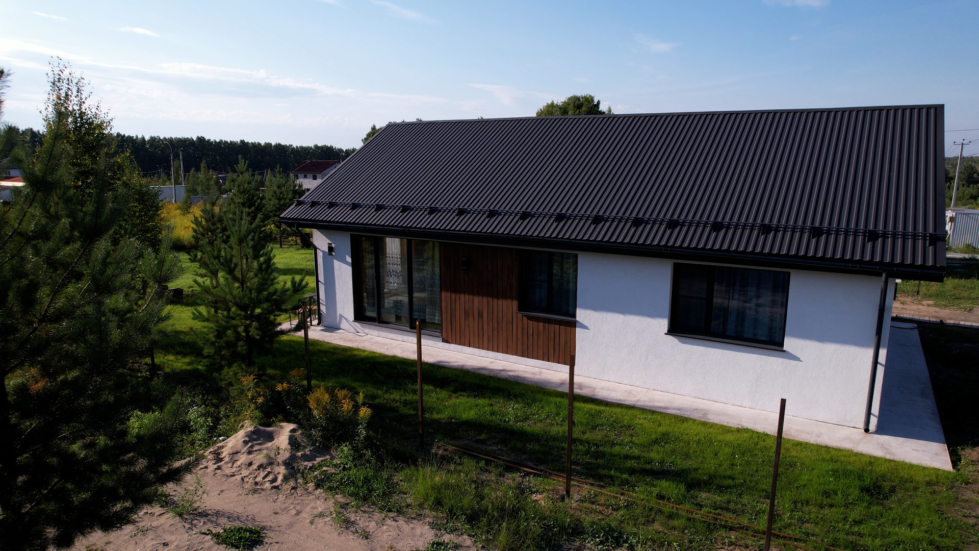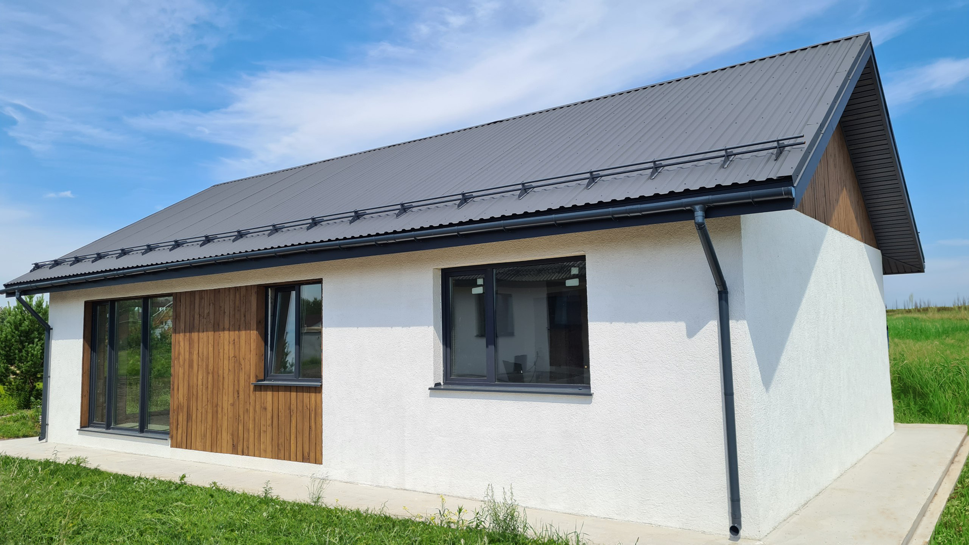 - Фасад: мокрая штукатурка и планкен