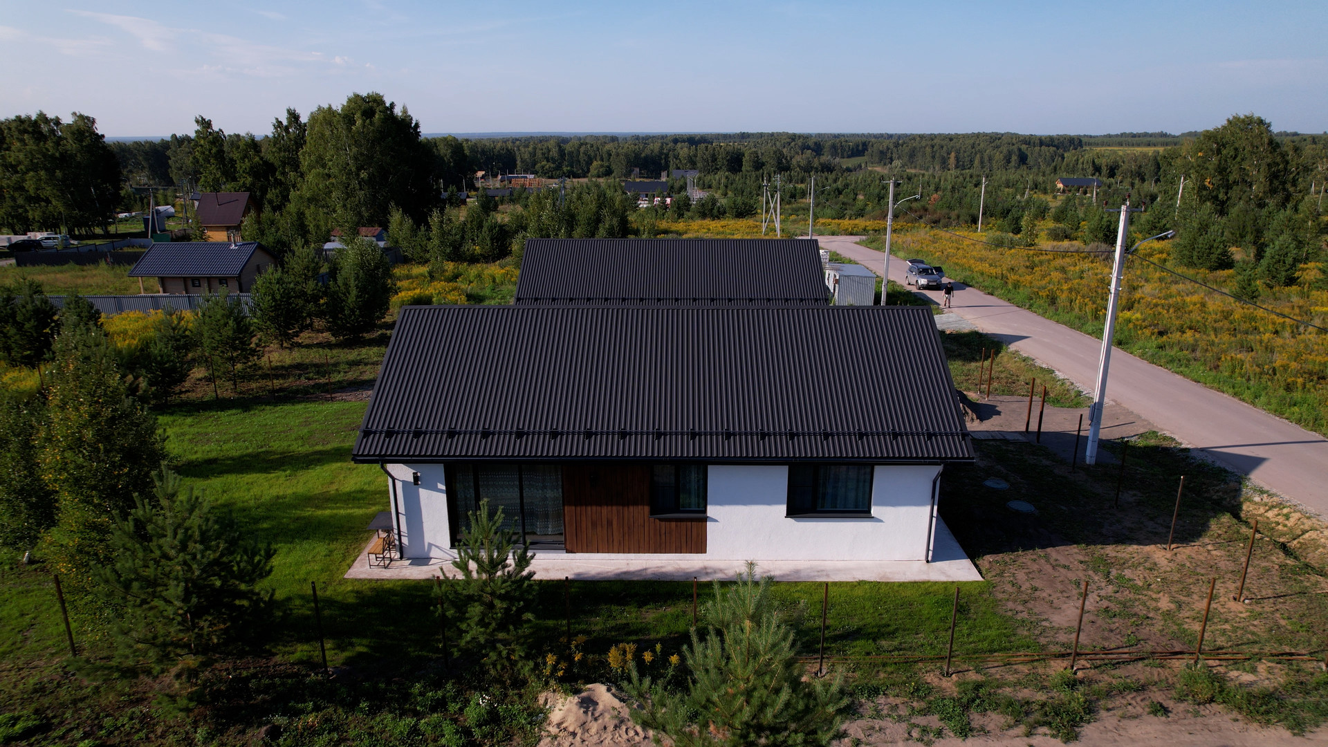 На территории поселка есть яркая игровая площадка, воркаут-зона с уличными тренажерами, березовый сквер с аллеей для прогулок и беседка для пикника.