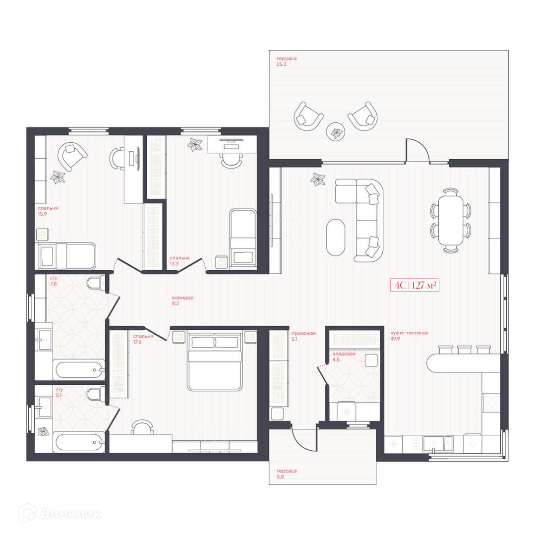 Общая площадь 127.38 м2