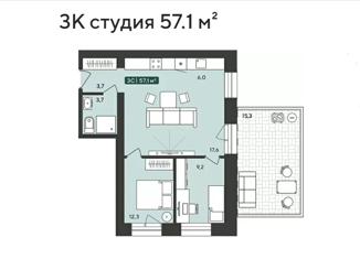 Общая площадь: 57.1 м2