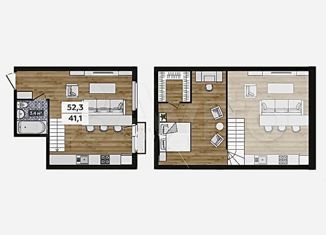 Общая площадь: 52.3 м2