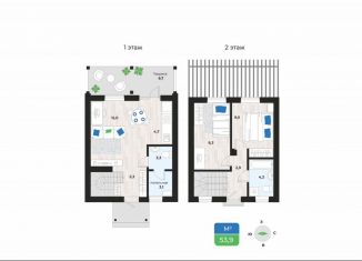 Общая площадь: 53.9 м2
