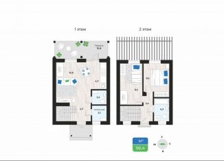 Продам двухкомнатную квартиру, 56.4 м2, КП Грин Парк Заречный, 19