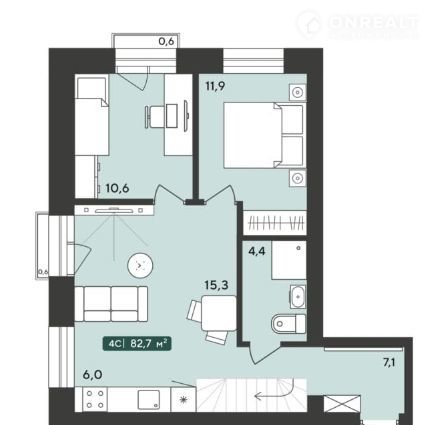 Общая площадь 87.3 м2