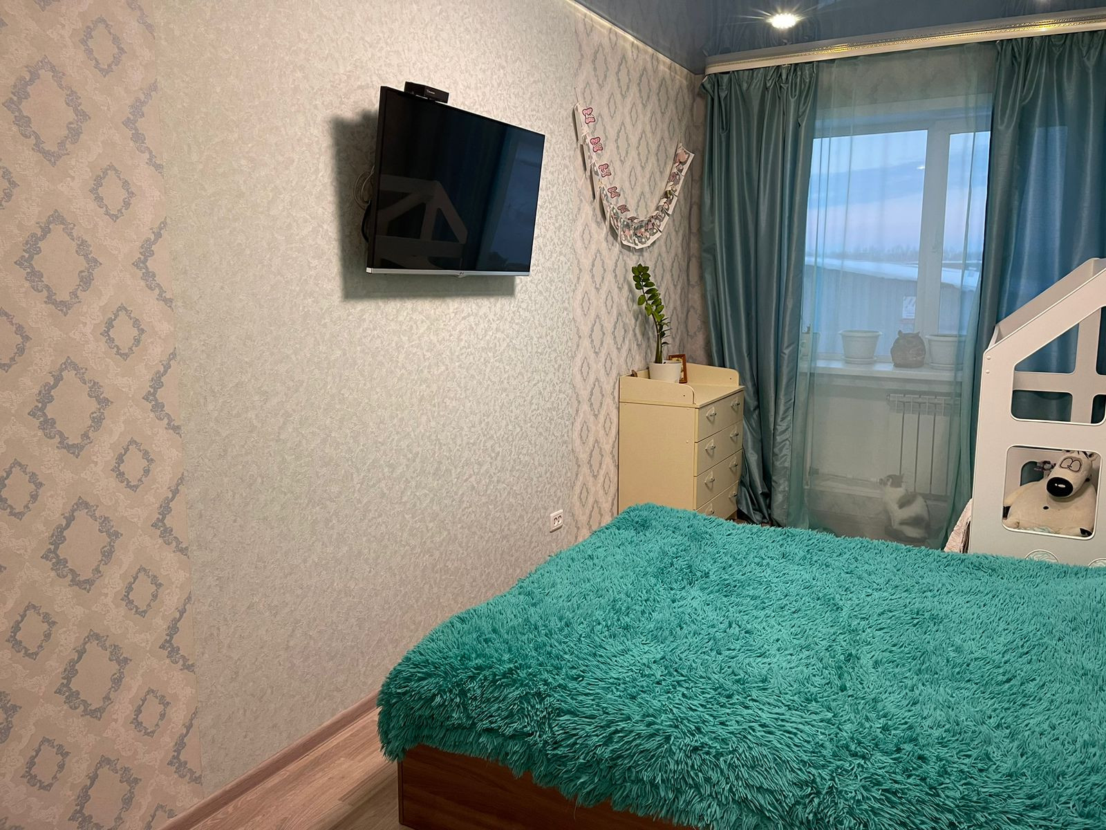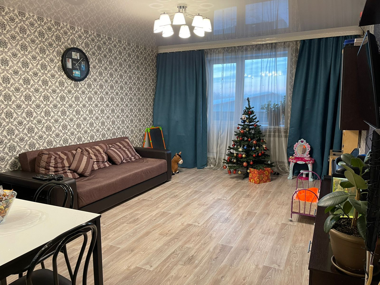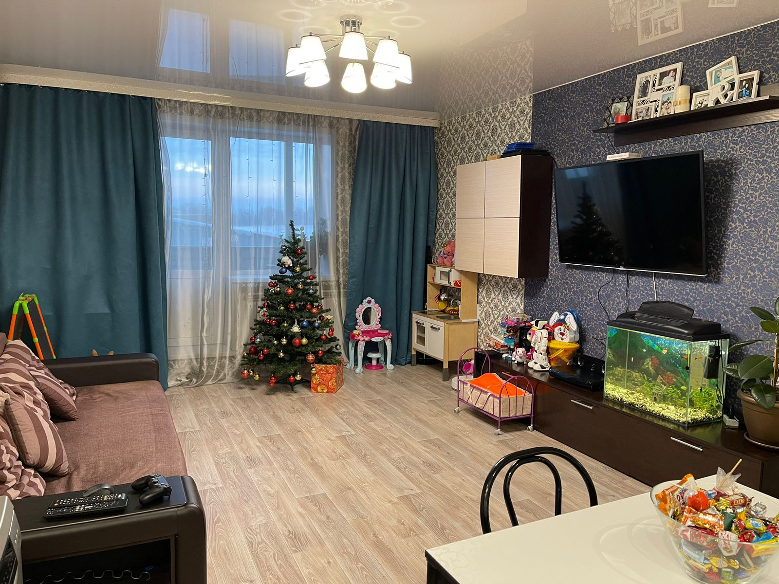 В коридоре и ванной комнате теплые полы . Во всей квартире натяжные потолки . Балкон не застеклен . Радиаторы все заменены на биметалические радиаторы . Вся проводка сделана дорогими проф.материалами . Квартира теплая, на данный момент даже отключены батареи , потому что тепла хватает .  В микрорайоне работают 3 садика,  новая школа . Из крупных магазинов  магнит , Мария-ра, магнит косметик , фармакопейка и очень много маленьких частный магазинов с различной продукцией . В поселке есть фитнес клуб, стоматология , фельдшерский пункт , также можно сдать анализы . Для детей различные секции (танцы, пение , гимнастика и т.д)