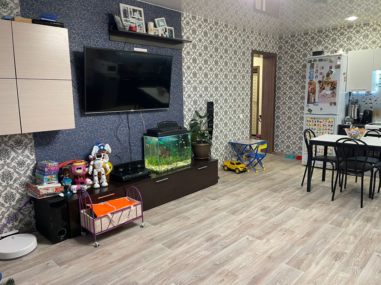 В продаже 2-х комнатная студия. В квартире точно останется кухня (без техники) , в гостиной стенка , в коридоре прихожая , в ванной дорогой бойлер , зеркало, подвесная тумба с раковиной .