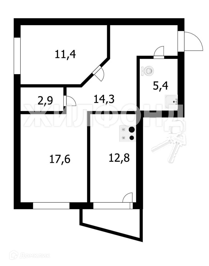 Общая площадь 64.4 м2
