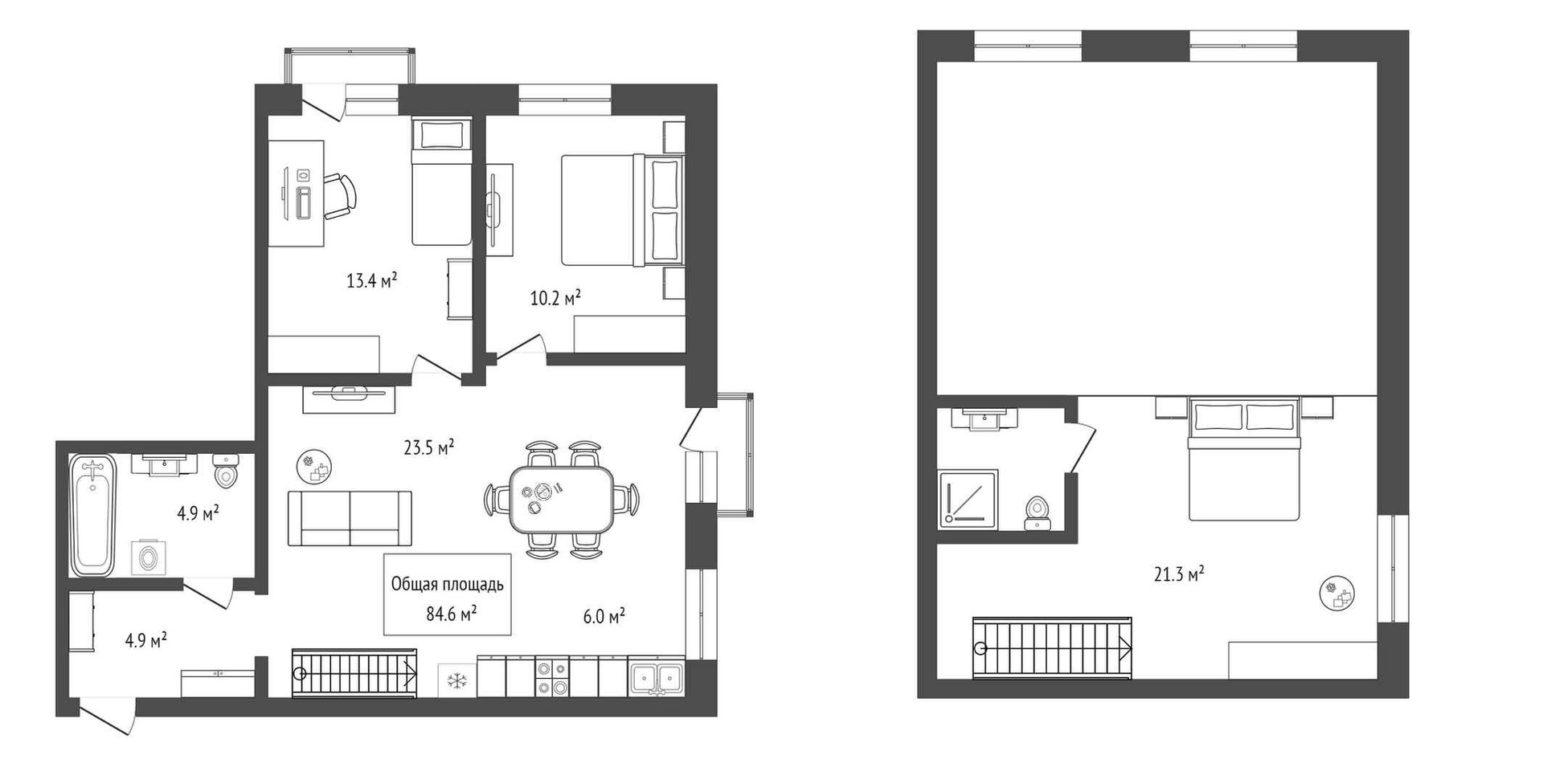 Общая площадь 84 м2