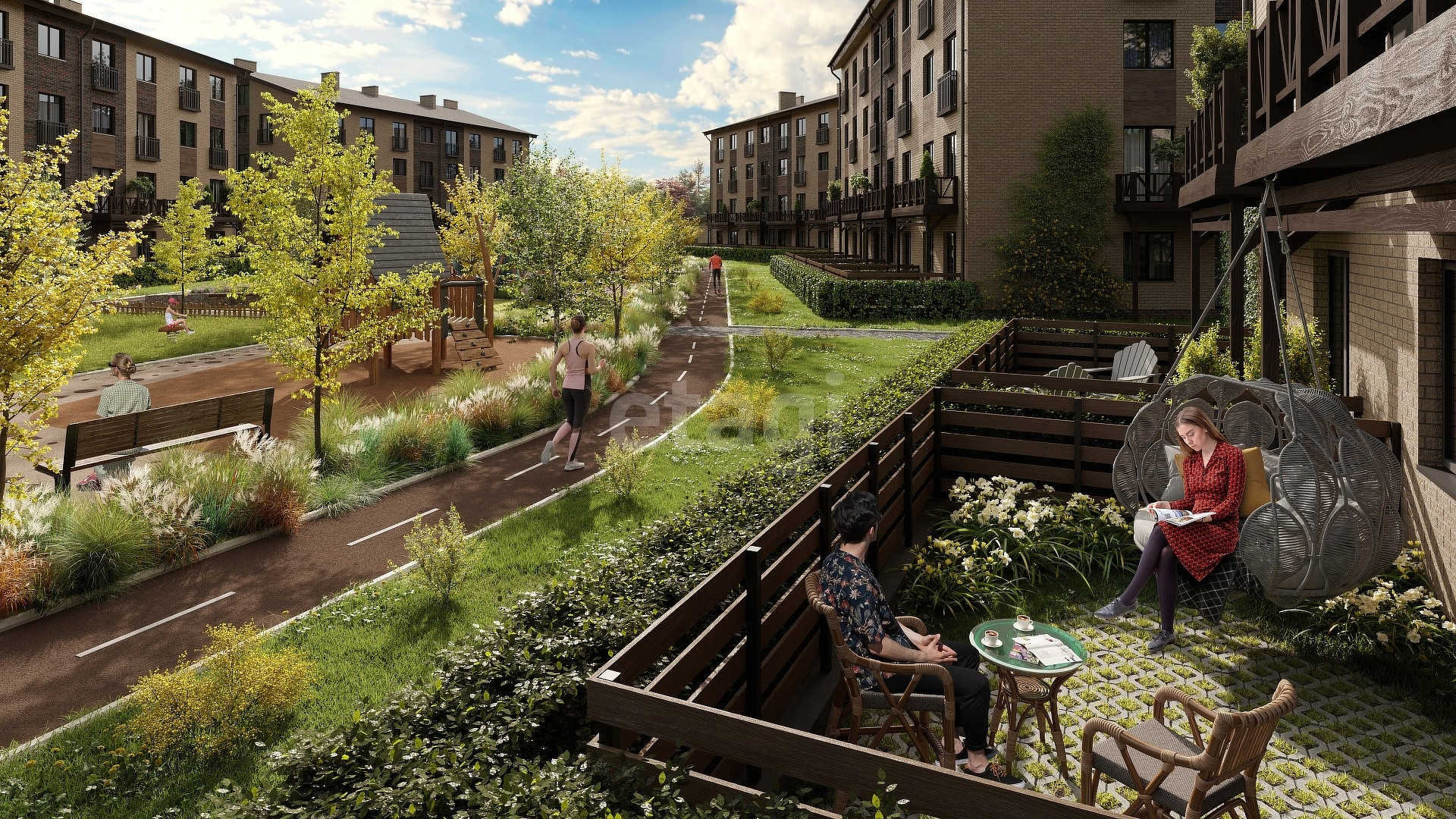 Рядом школа, детский сад и даже фитнес-клуб.