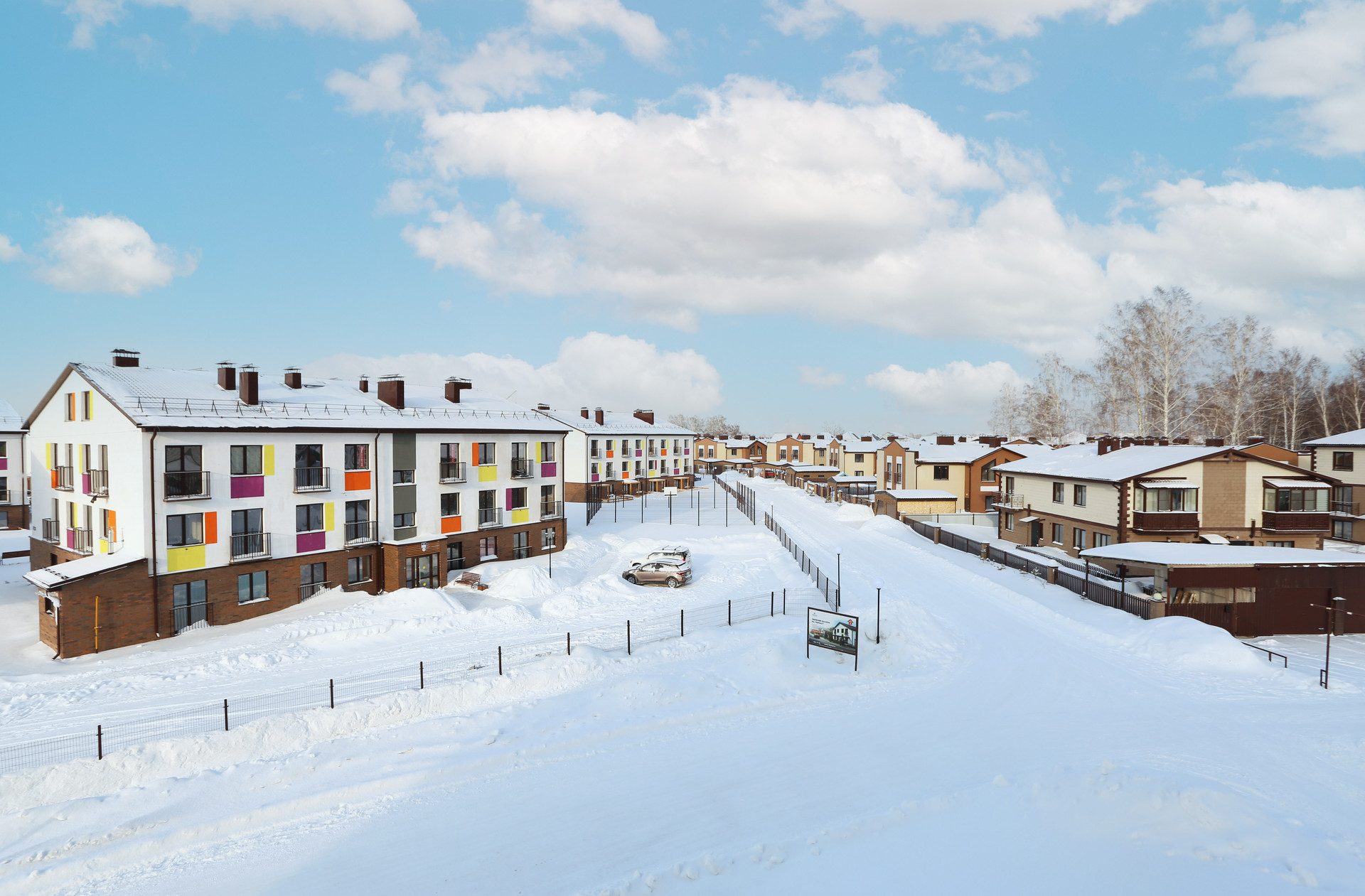 Новостройка расположена за пределами шумного города – в тихом Мошковском районе Новосибирска. Это 23 км от площади Калинина.