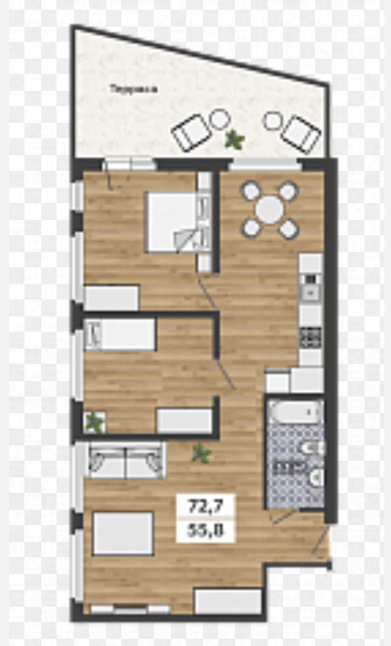 Общая площадь 72.2 м2