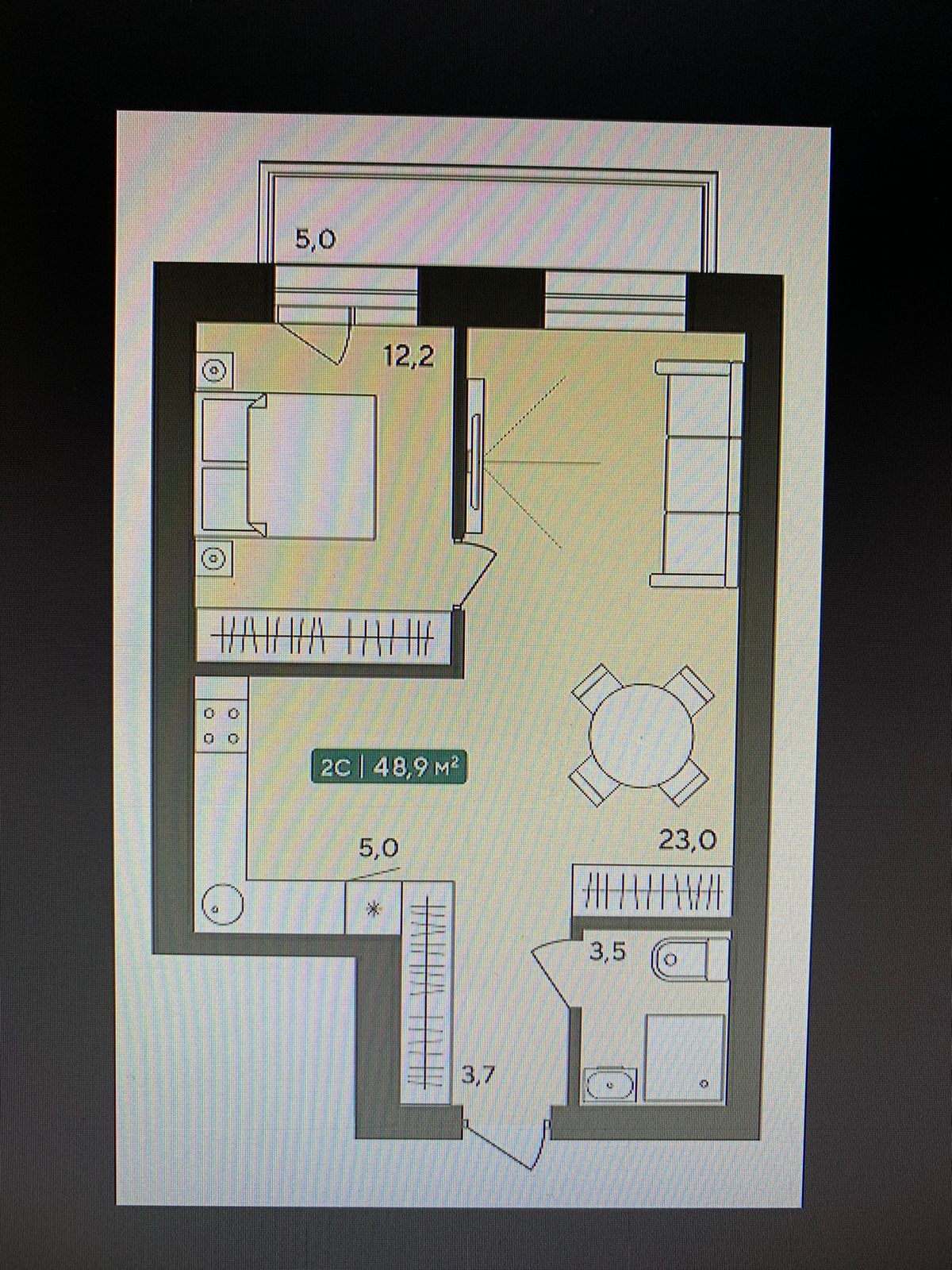 Общая площадь 48.9 м2