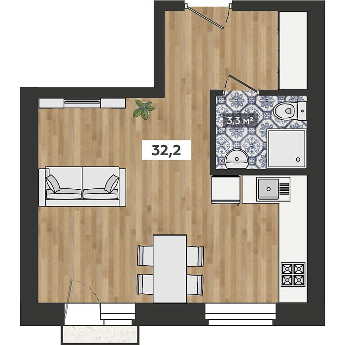 Общая площадь 32.2 м2