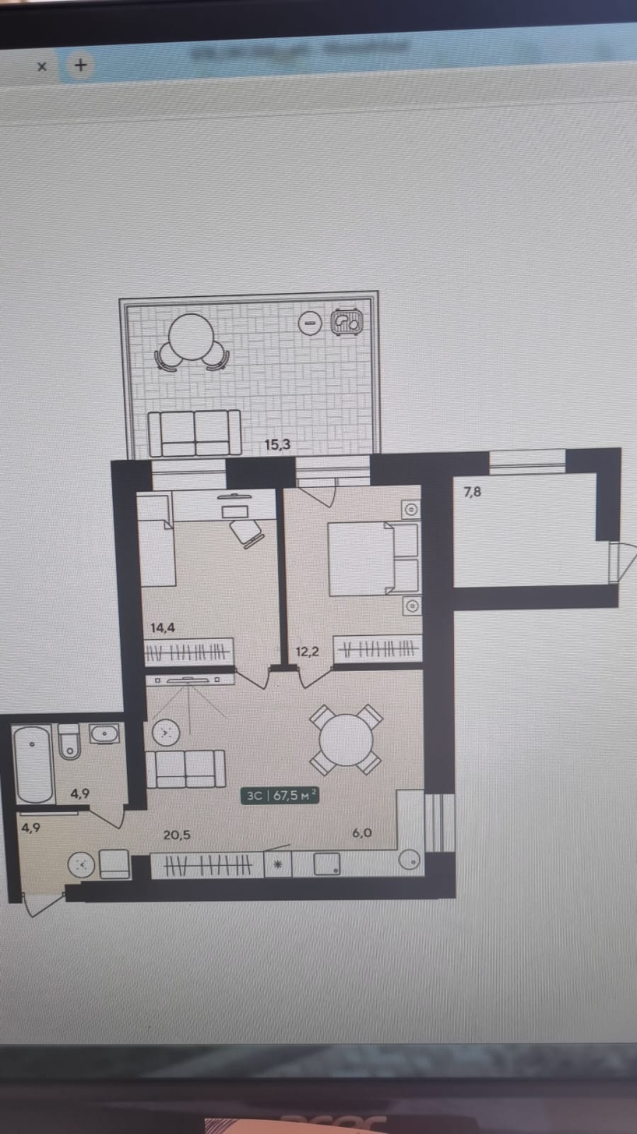 Общая площадь 67.5 м2