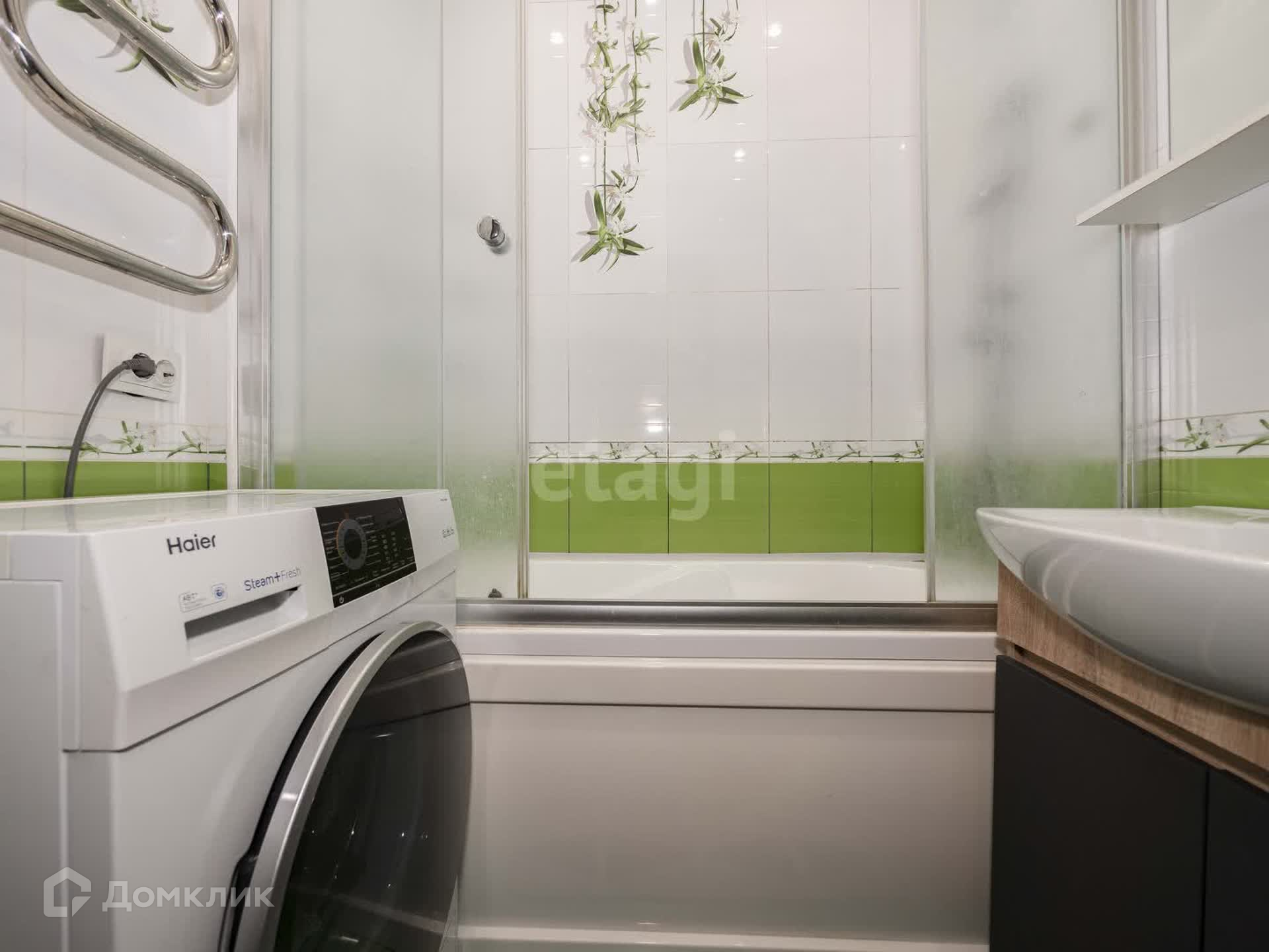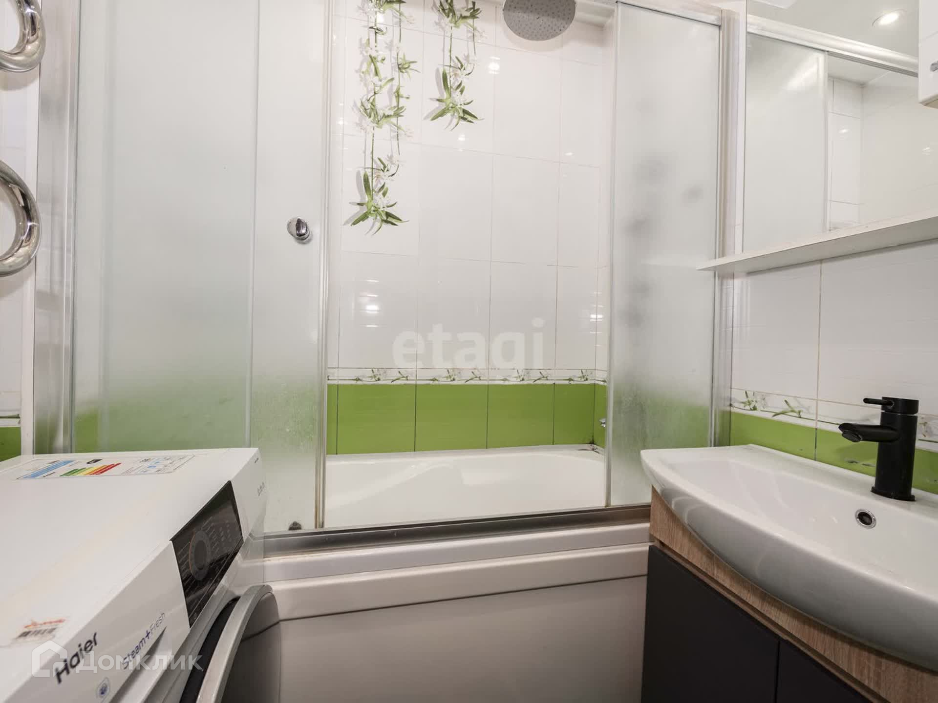 + в санузлах керамическая плитка до потолка, напольная плитка