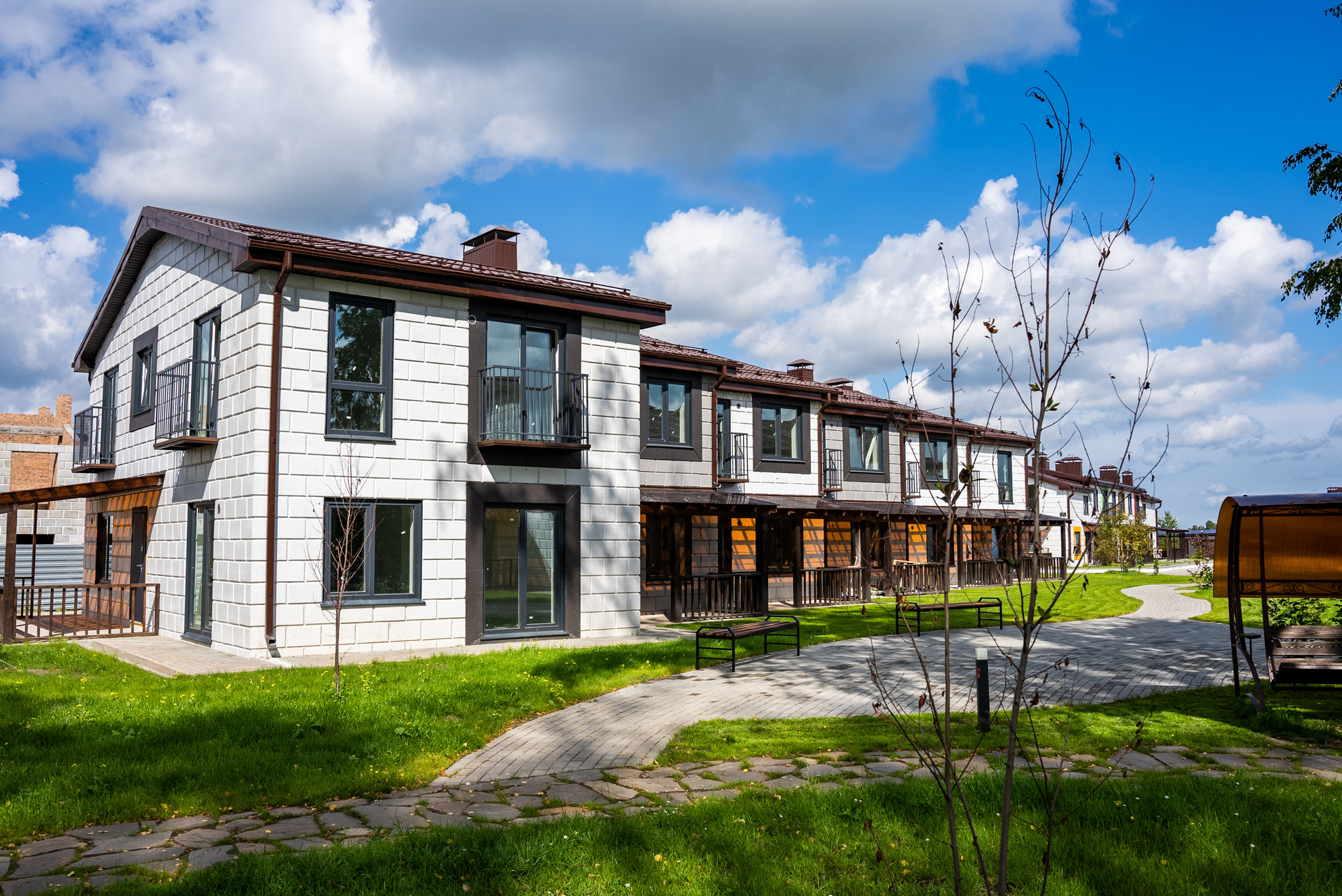 - Дворы с благоустройством и озеленением. Благоустройство по индивидуальному проекту. Авторские решения.