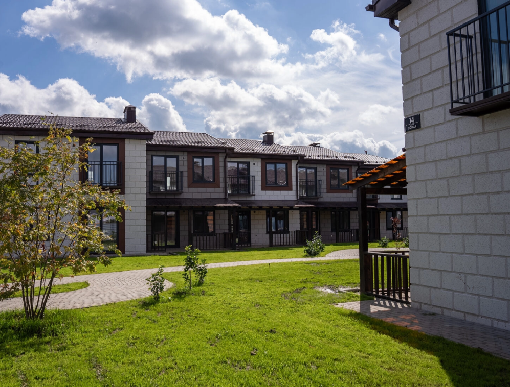 Школа, детские сады, магазины и фитнес-клуб – всё в шаговой доступности. Квартал рассчитан на 28 двухуровневых домов с террасами, собственными участками и гаражами. На закрытой территории квартала расположены детские площадки и зоны отдыха с беседками. Собственная парковка у дома.