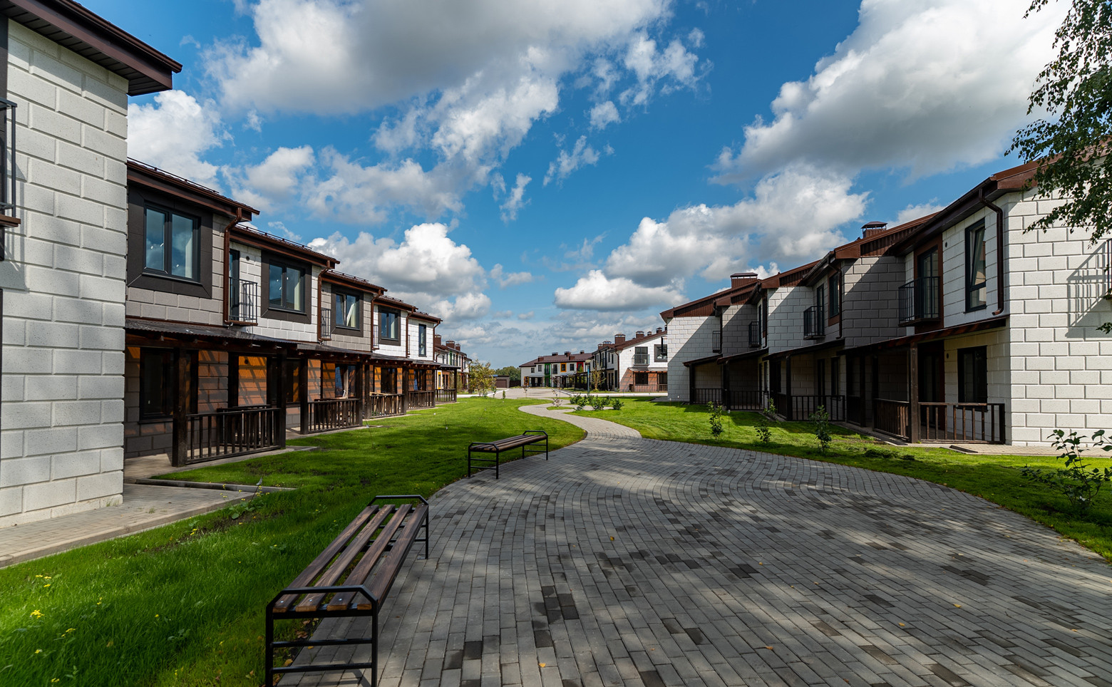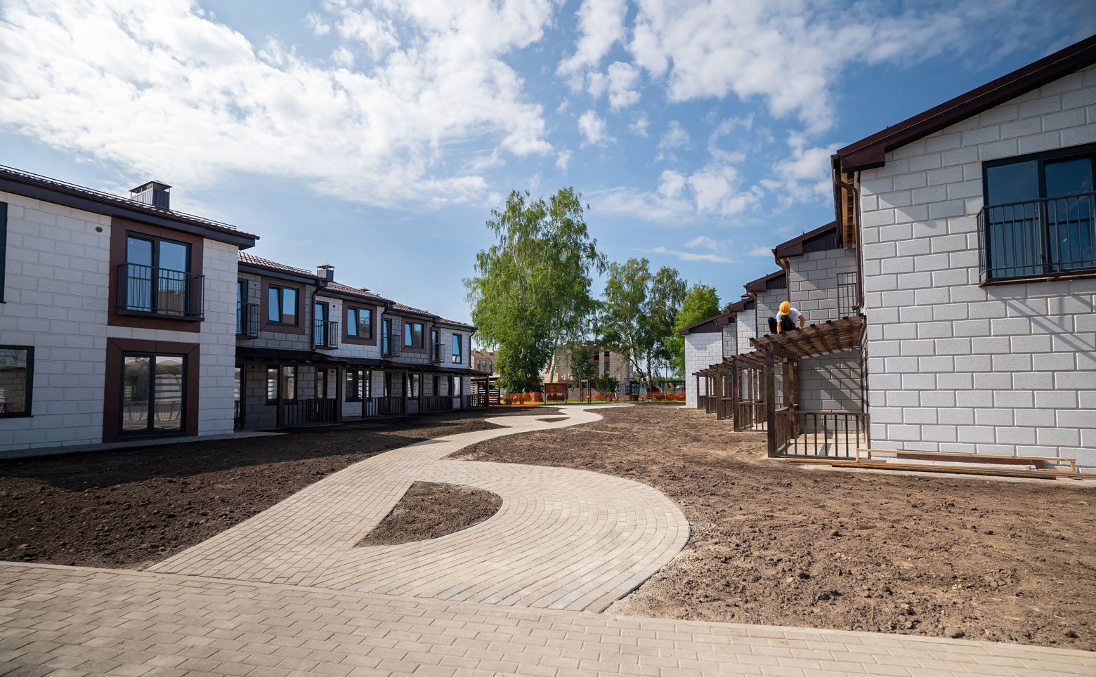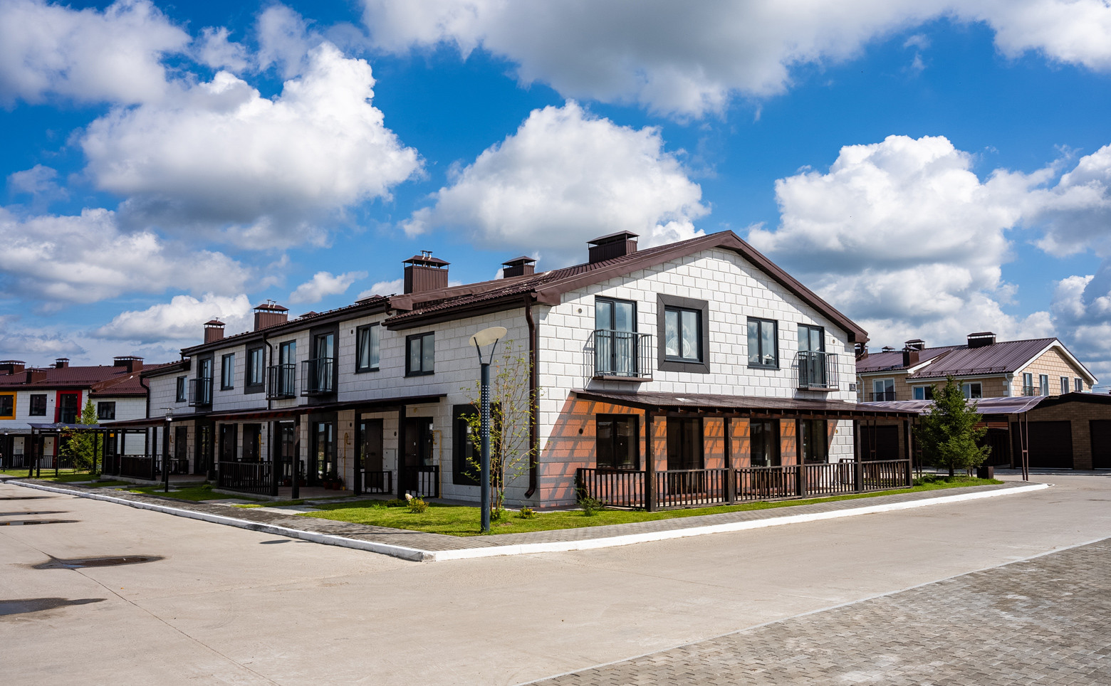 Квартал рассчитан на 28 двухуровневых дома с террасами, собственными участками и гаражами. В оформлении фасадов используется облицовочный кирпич.