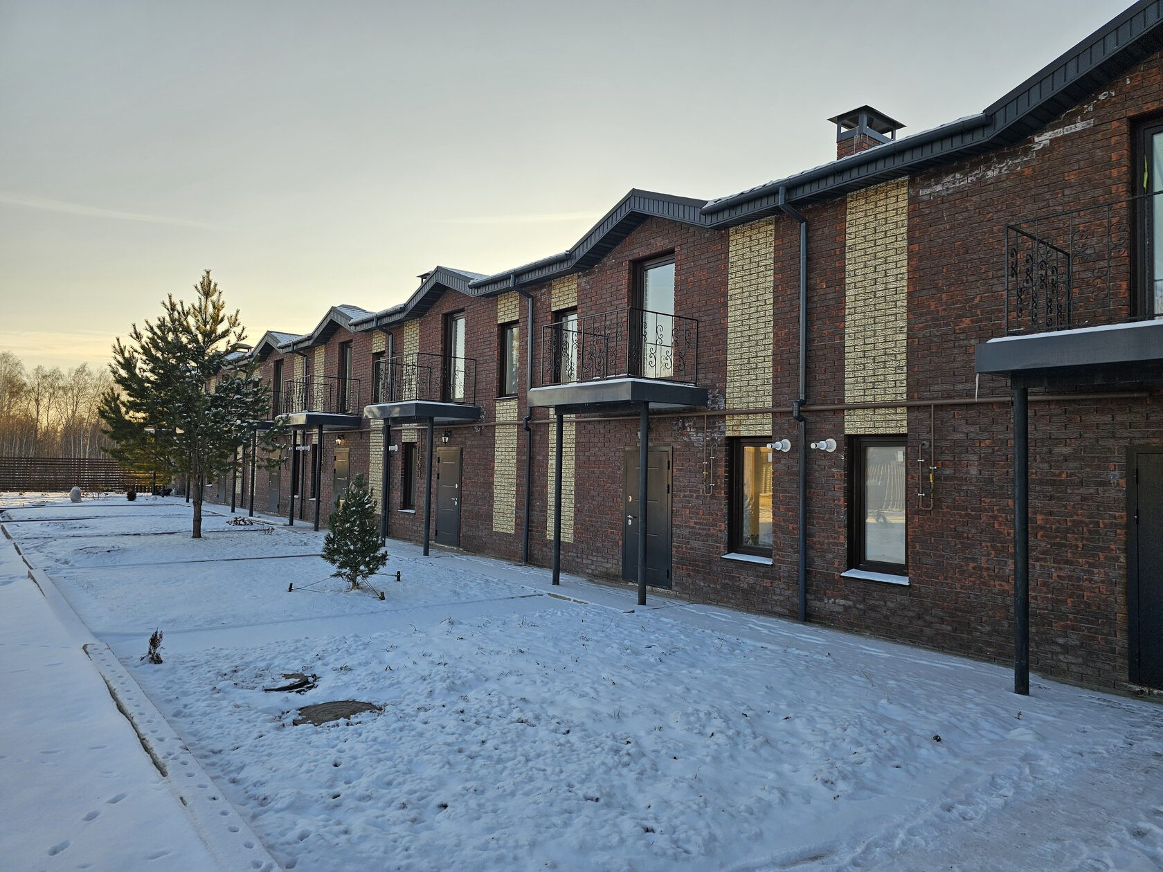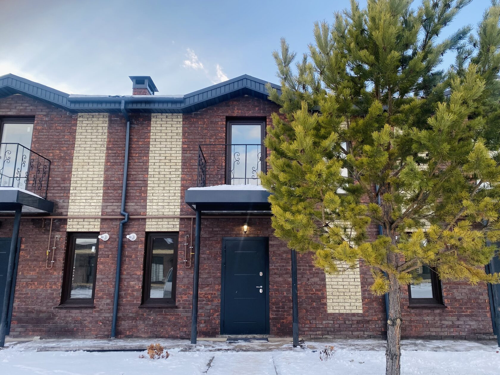 -Двухэтажный КИРПИЧНЫЙ таунхаус с собственным участком и парковочным местом.