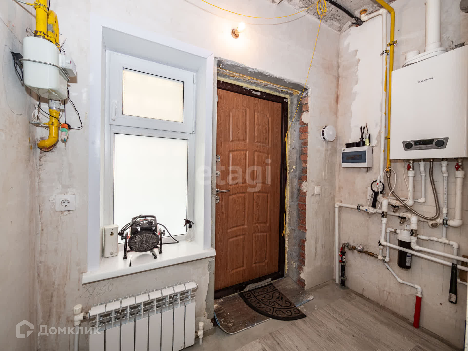 Имеется полный набор коммуникаций, включая газ, электричество, воду, канализацию и интернет. Стены выполнены из кирпича.