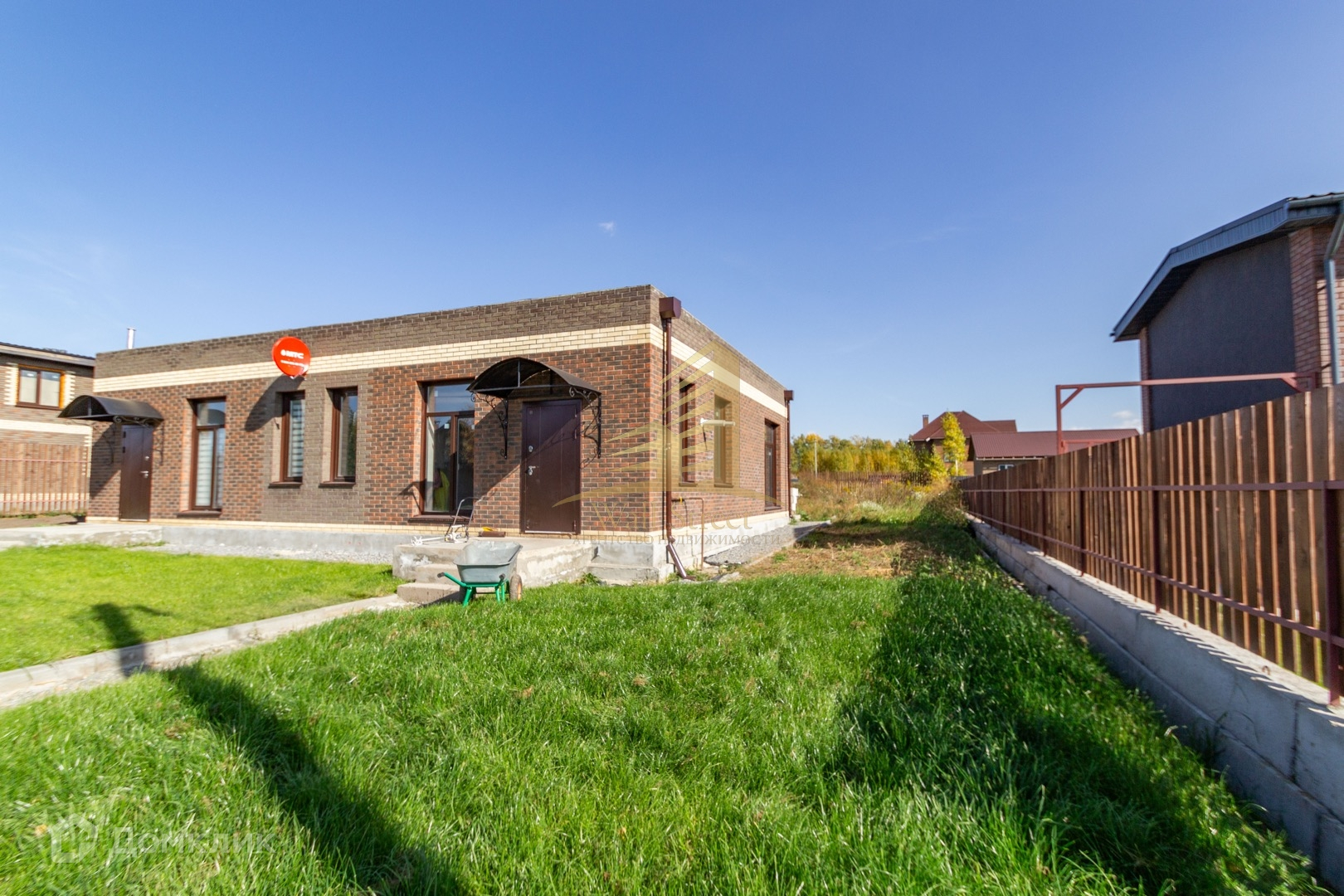 В продаже таунхаус (полдома) с террасой и участком 5 соток в коттеджном поселке Клубника. Красивая архитектура, единый стиль застройки, ухоженная территория - асфальтированные дороги и замечательное соседство.