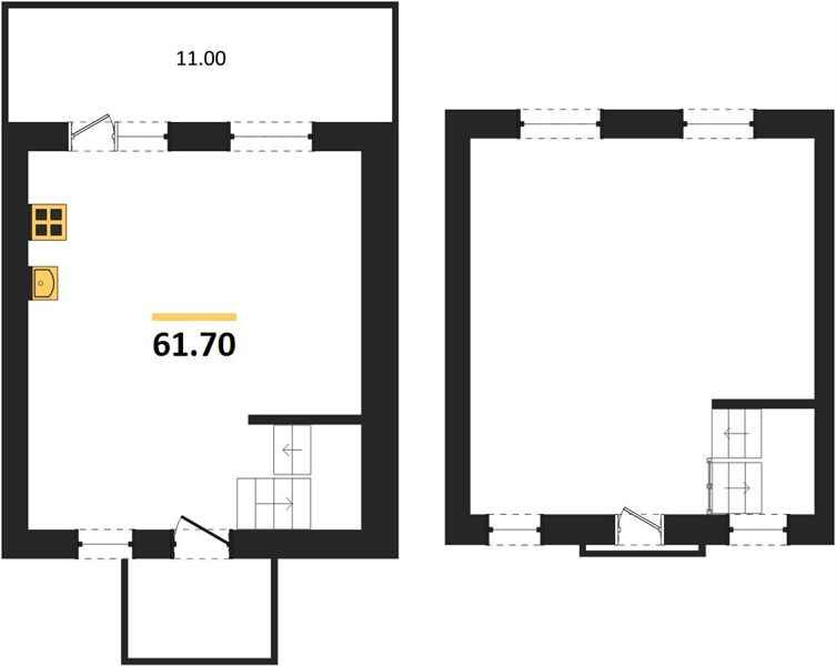 Общая площадь 61.7 м2