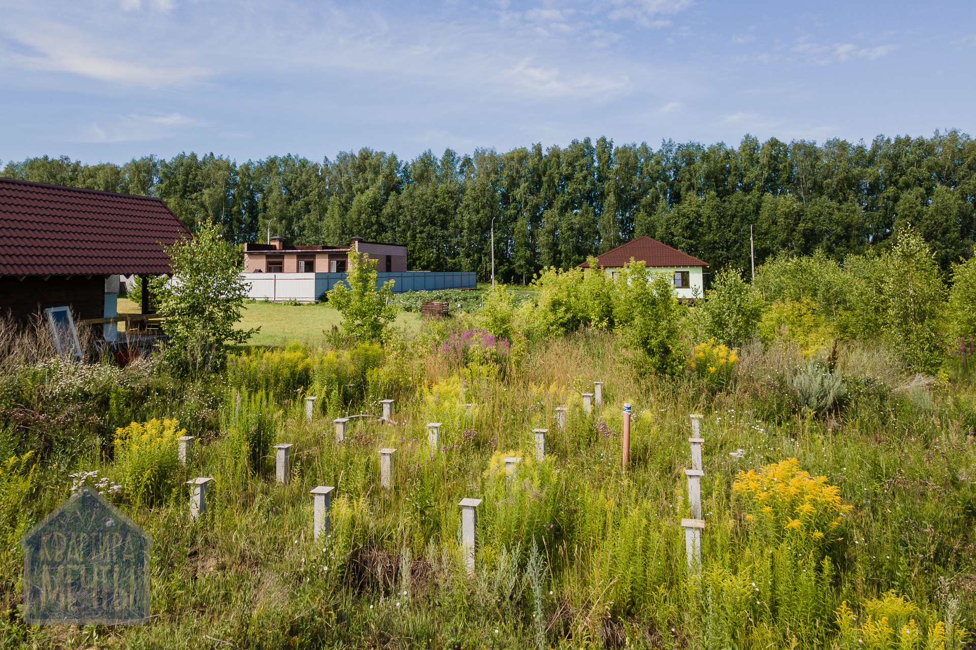 На участке уже готов свайный фундамент. Есть проект дома, готовы предоставить. Электричество подключено.