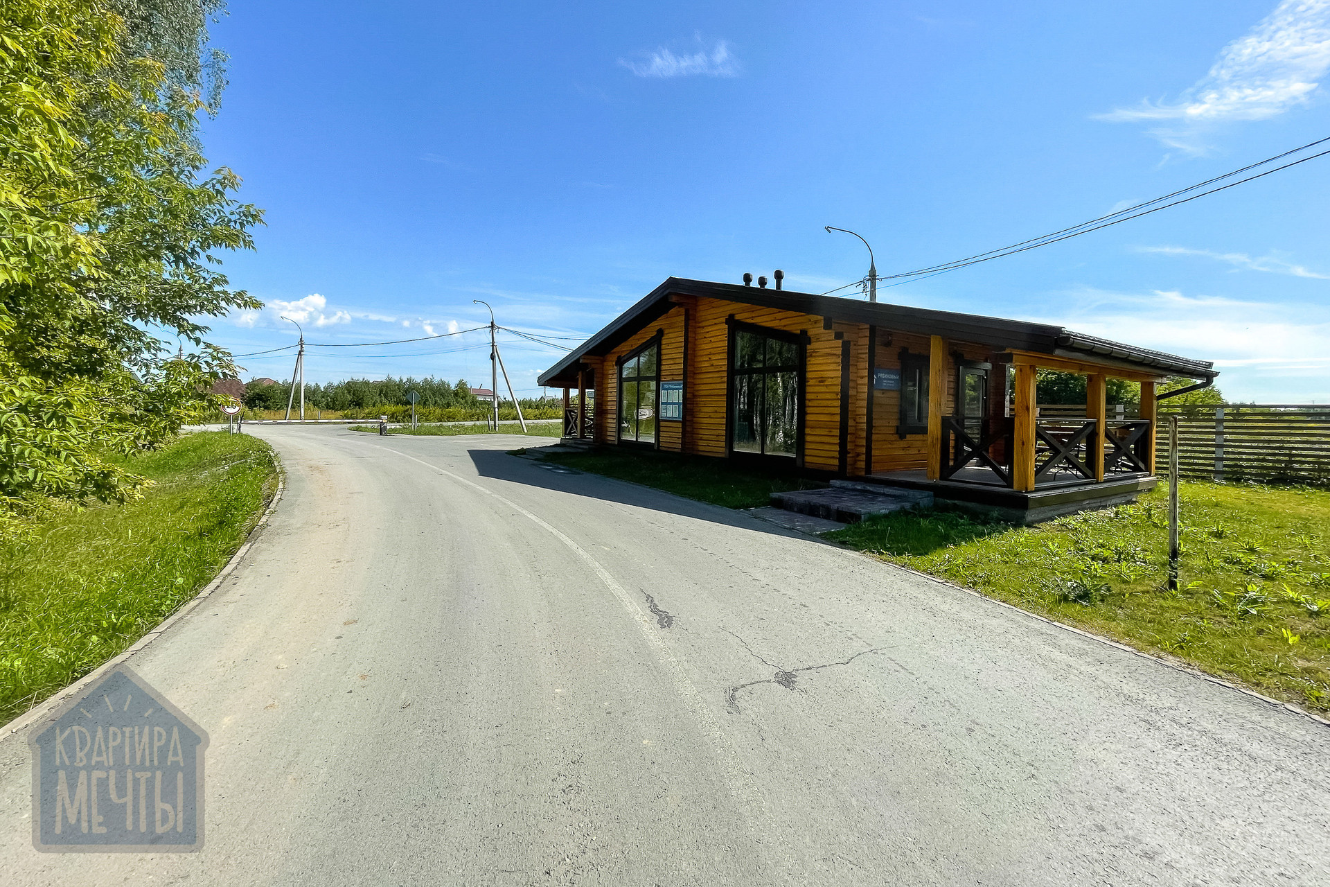 Остановка общественного транспорта находится на въезде в поселок.