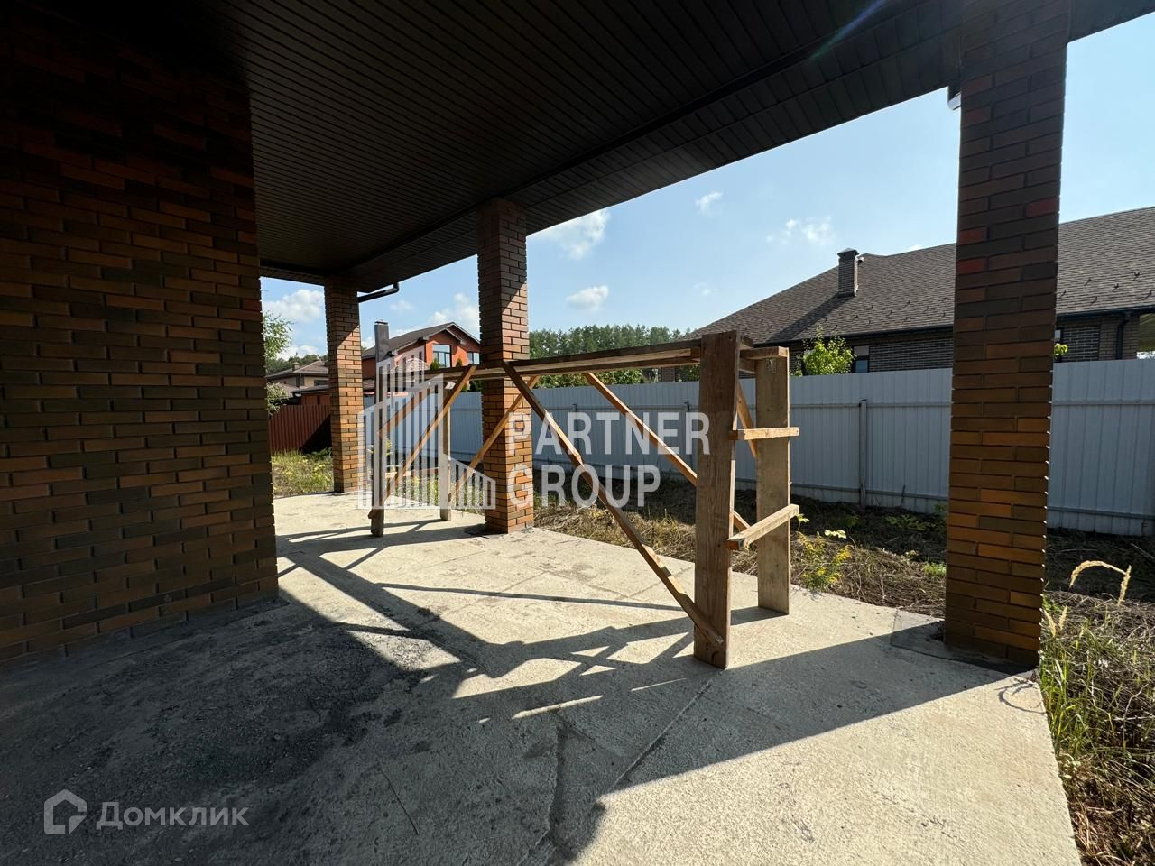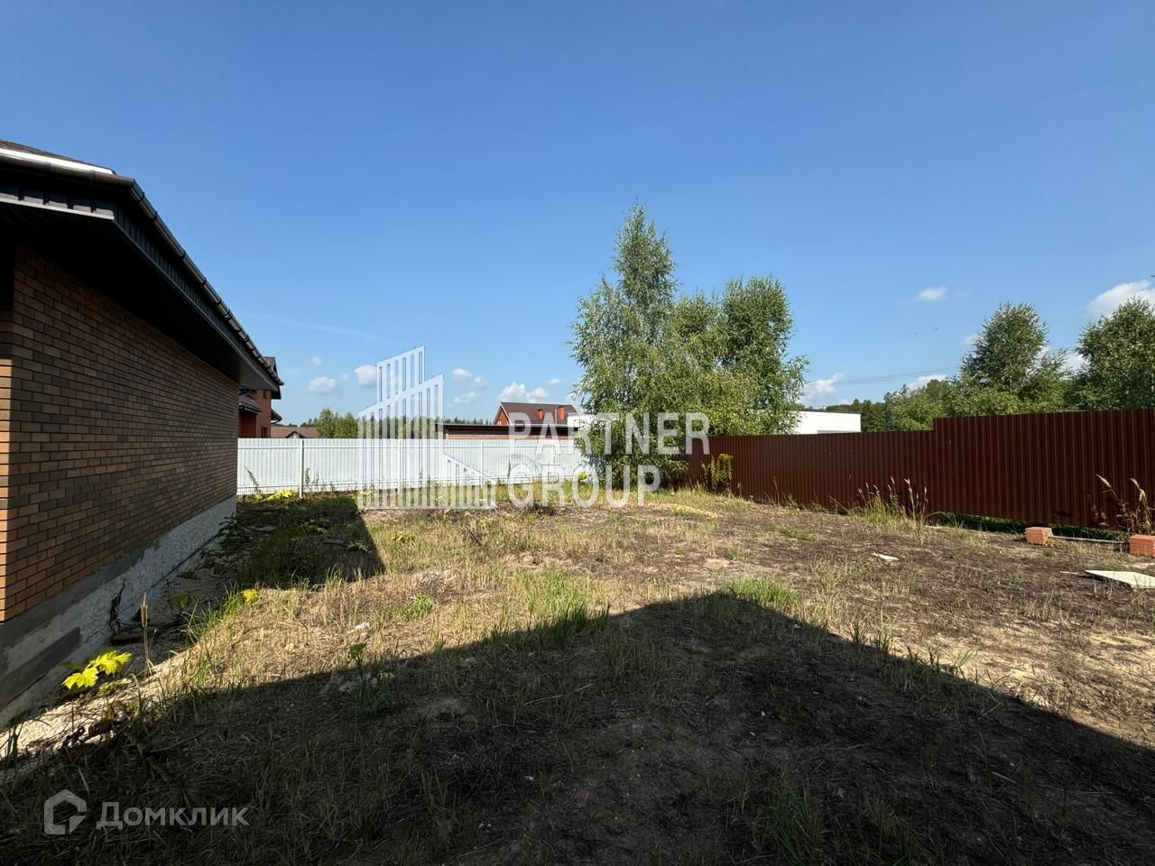 Комфорт и безопасность: участок по периметру огорожен забором с кирпичными столбами, откатными воротами и калиткой.