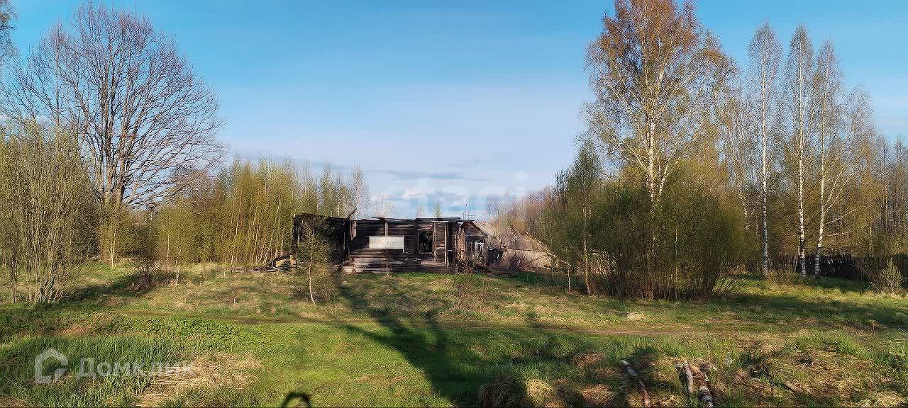 На территории участка находится сгоревший дом. К участку проведен газ и электроснабжение, есть возможность провести центральное водоснабжение, труба проходит в 10 метрах от дома.
