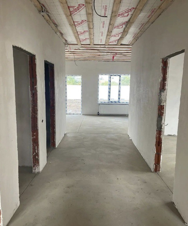 Предчистовая отделка: стяжка Пола, штукатурка стен, разводка электрики, теплый пол от газового котла, септик.