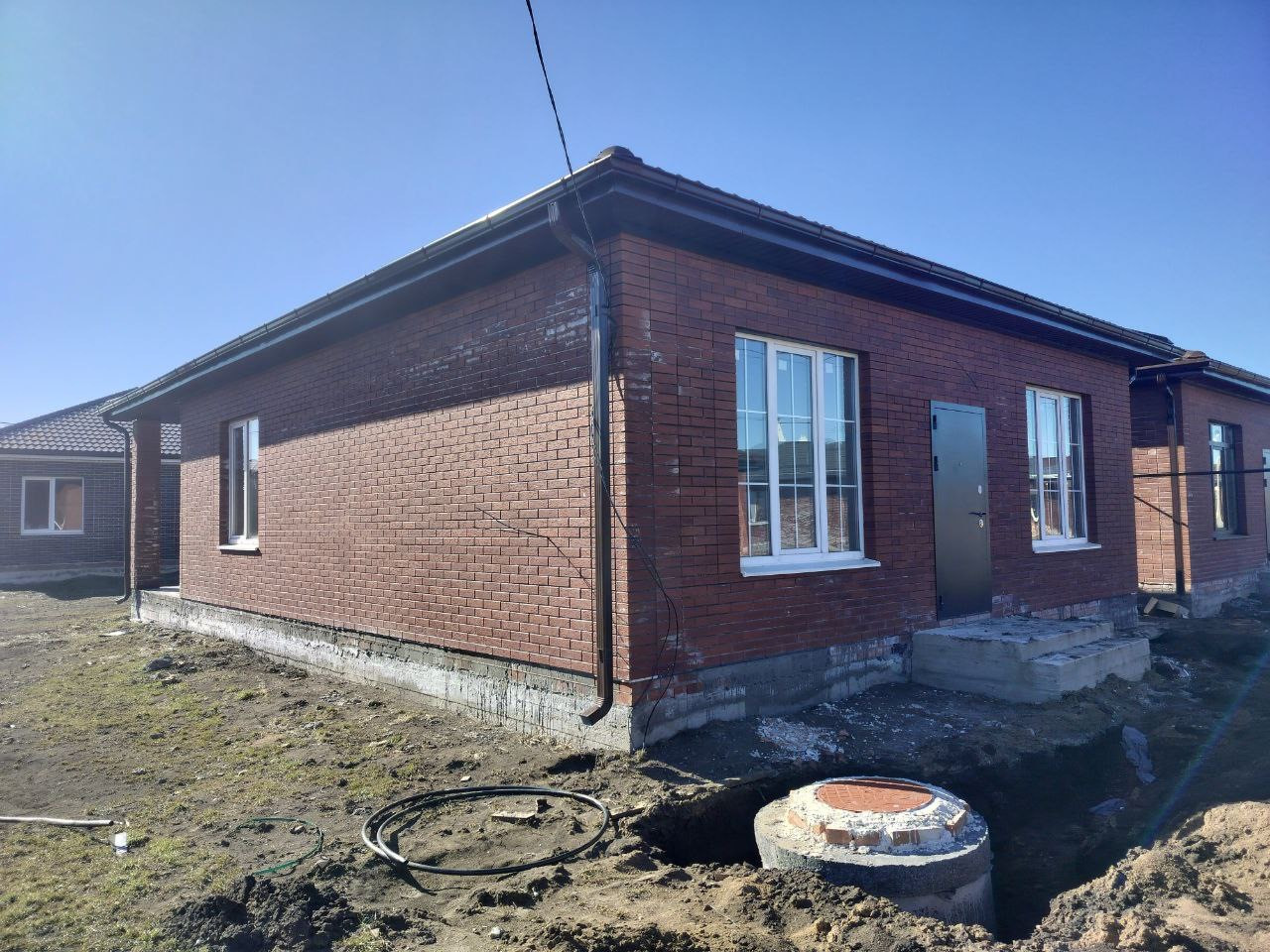 Выполнена предчистовая отделка (стяжка пола, теплый пол, штукатурка стен, разводка электрики/сантехники, газовый котел)